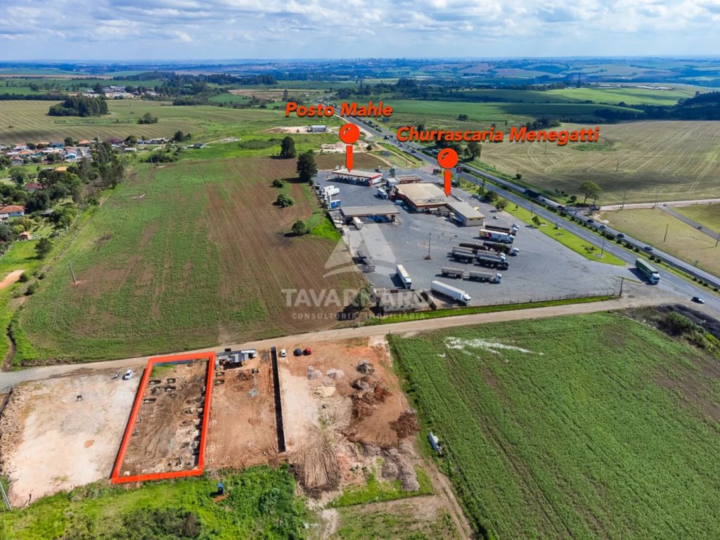 O barracão é de fácil acesso e está localizado próximo a PR-151. O imóvel possui uma área a ser construída de 670m² distribuídos em um amplo espaço principal, 03 salas para escritório, cozinha e 02 banheiros. Contará com recuo de 15 metros.