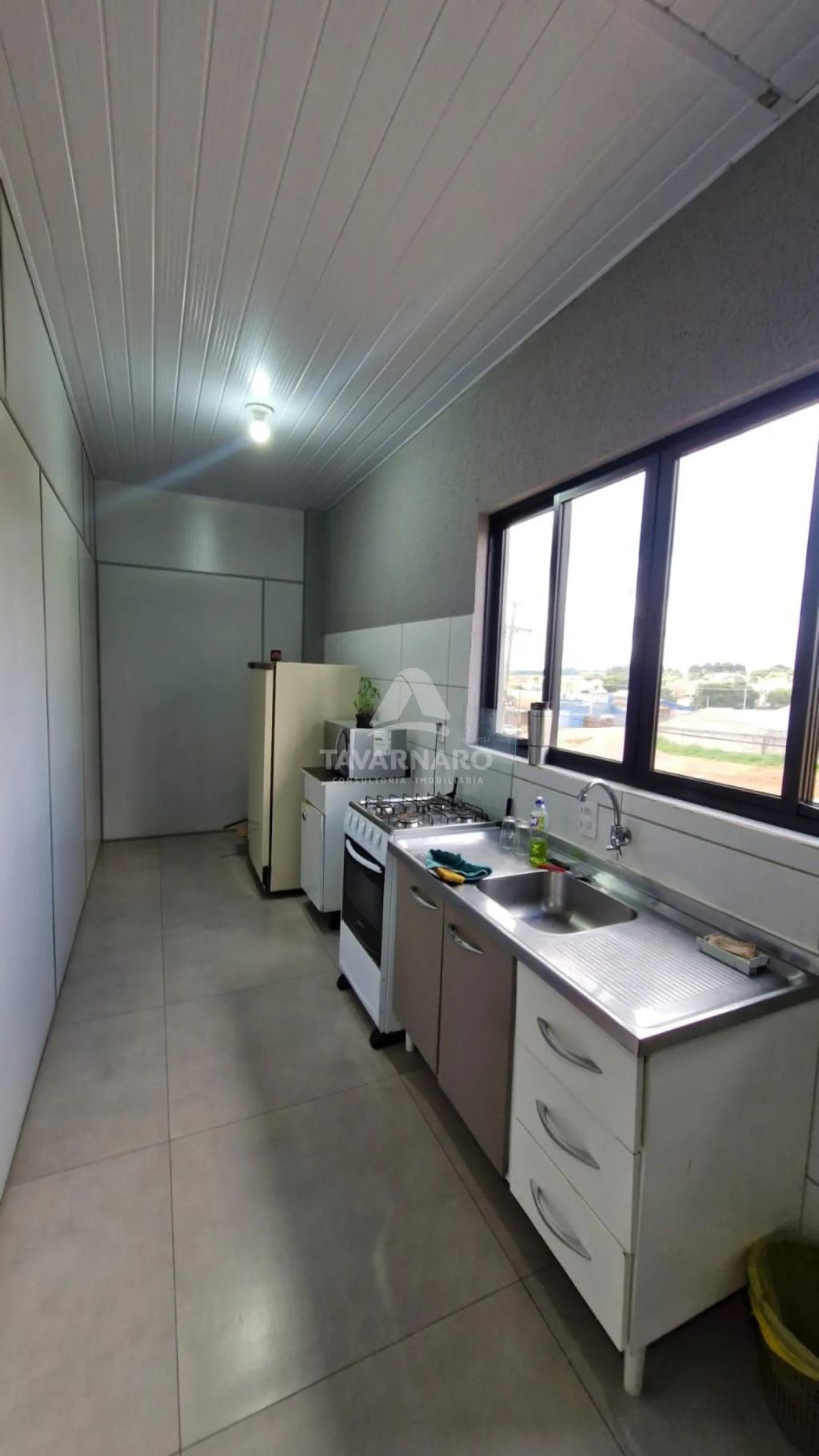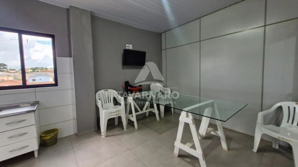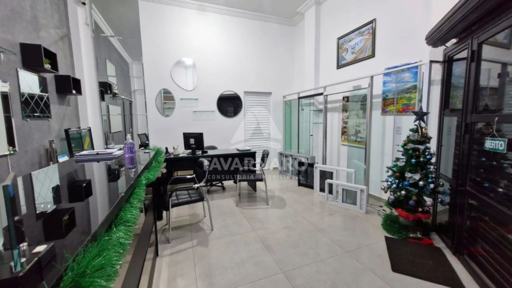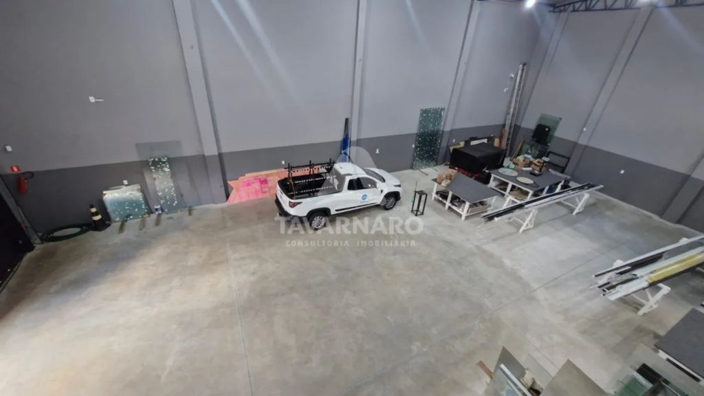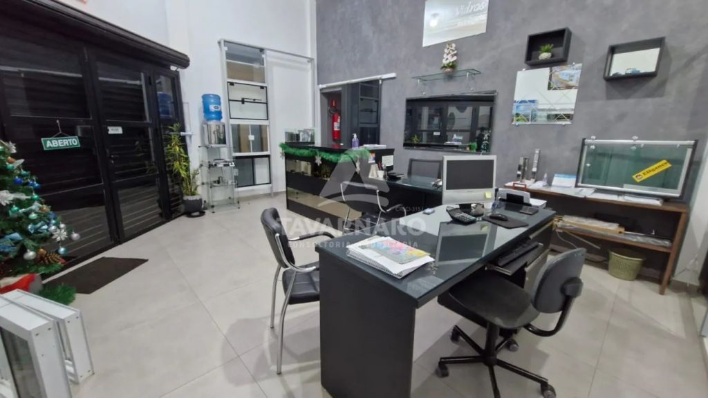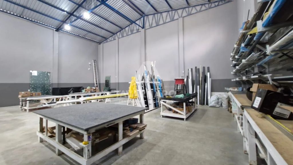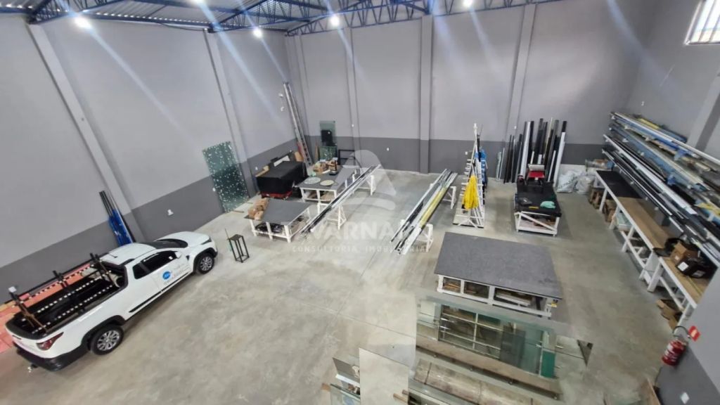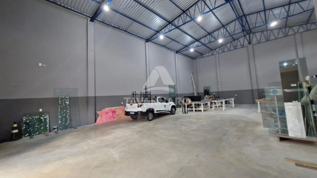 Barracão em rua principal possuindo, aproximadamente 330 m² de área construída. Conta com recepção, dois banheiros, uma cozinha, piso reforçado para entrada de caminhões, cobertura com telhas sanduíche, pintura nova e padrão de energia trifásico.
