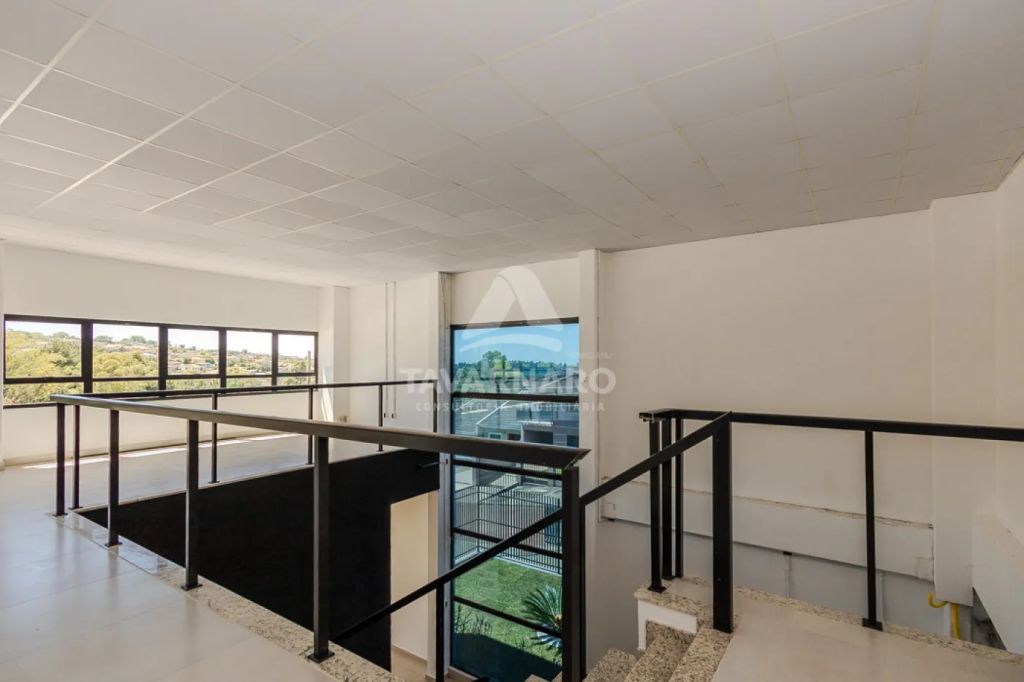 Ao entrar no barracão, há um hall de entrada que proporciona uma recepção acolhedora e profissional. Além disso, o imóvel possui um mezanino que conta com dois banheiros, o que facilita a utilização do espaço e acomoda confortavelmente os usuários.