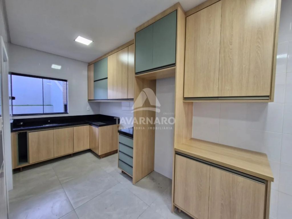 Imóvel novo com 118m² de área construída, distribuídos em 3 quartos, sendo 1 suíte, todos com armários planejados, banheiro social, sala de estar, lavabo, cozinha com armários, lavanderia, churrasqueira, quintal e 2 vagas de garagem.
