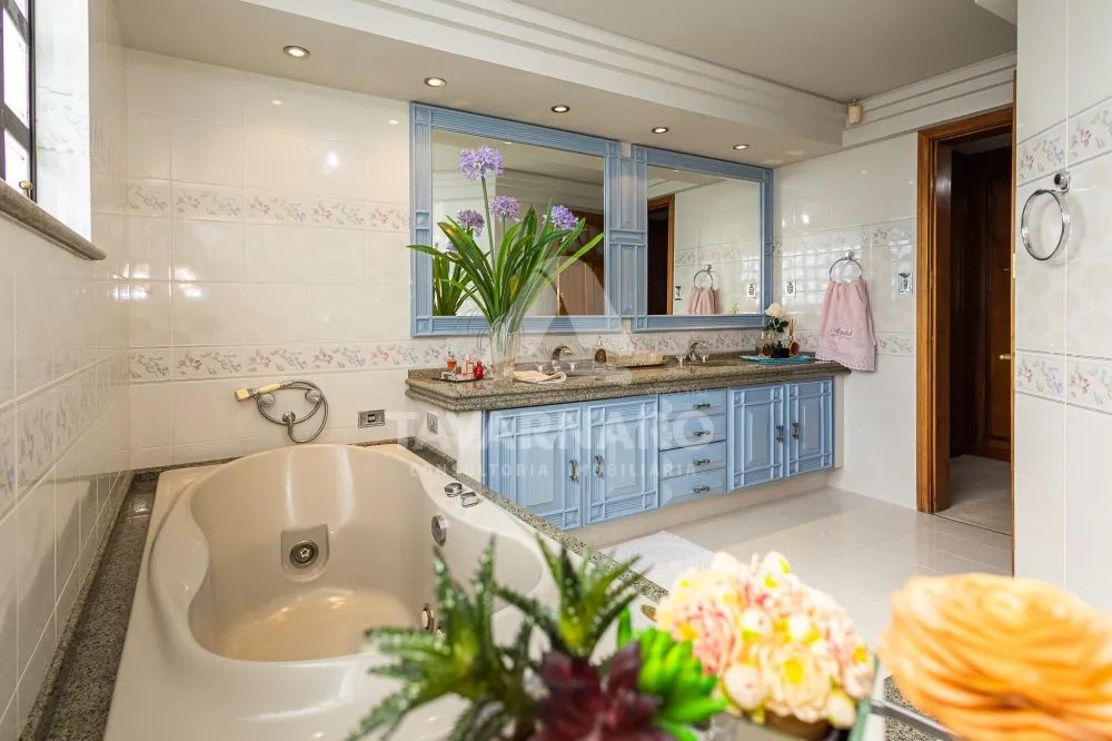 Com área de 367,40 m². No primeiro piso você encontrará uma elegante sala principal, sala de estar com lareira, sala de jantar, cozinha com armários completos, 2 lindas suítes, lavanderia funcional, dependência de empregada, banheiro e lavabo. Conta ainda com um salão de lazer amplo com churrasqueira e acesso direto para a piscina aquecida para mergulhos refrescantes.