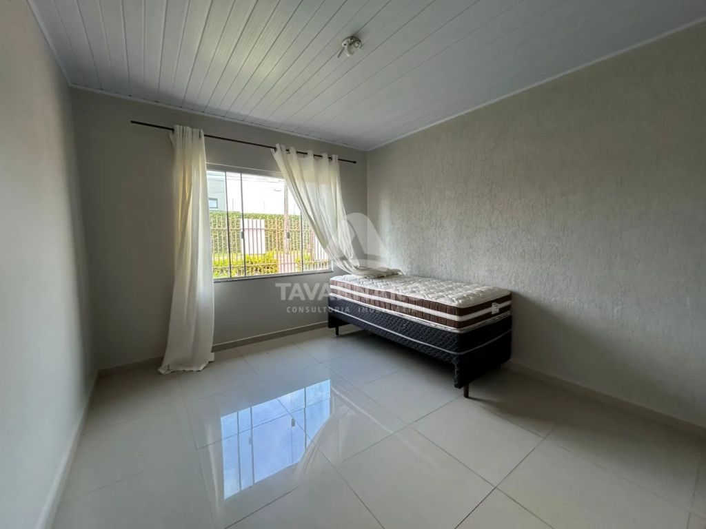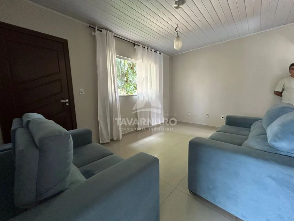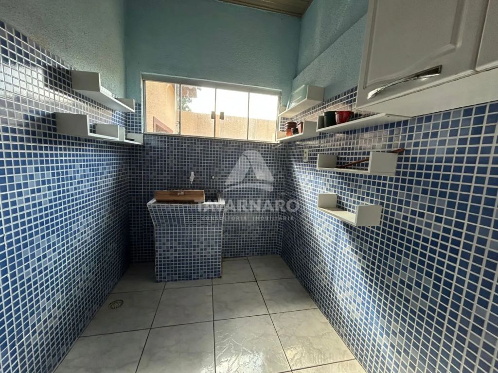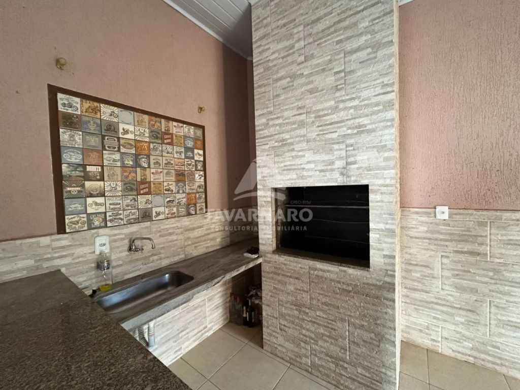 Casa conta com 1 sala de estar com 2 sofás, 3 quartos sendo 2 com camas box de solteiro, 1 copa, 1 cozinha com armários e geladeira, 1 área de serviço com lavabo, 1 banheiro com box blindex , área de churrasqueira com acesso ao quintal, trazendo ventilação e claridade ao ambiente, piso em porcelanato polido.