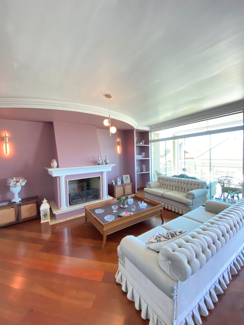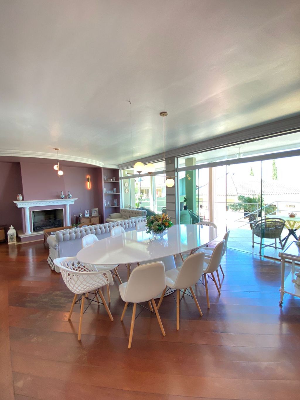 Ambientes amplos e integrados com lareira e escritório