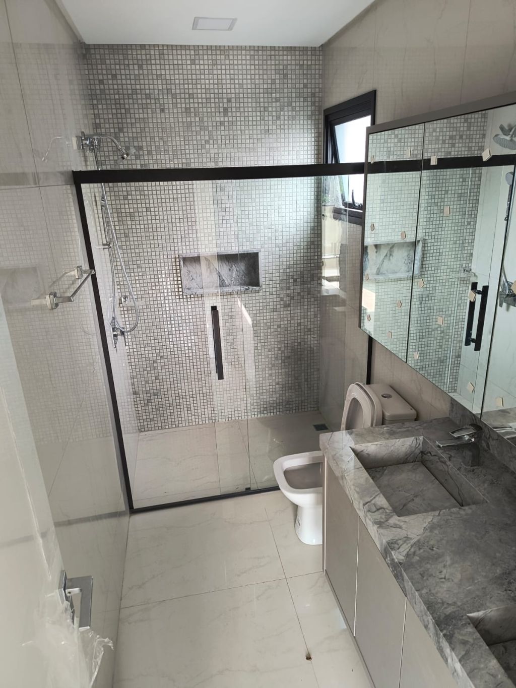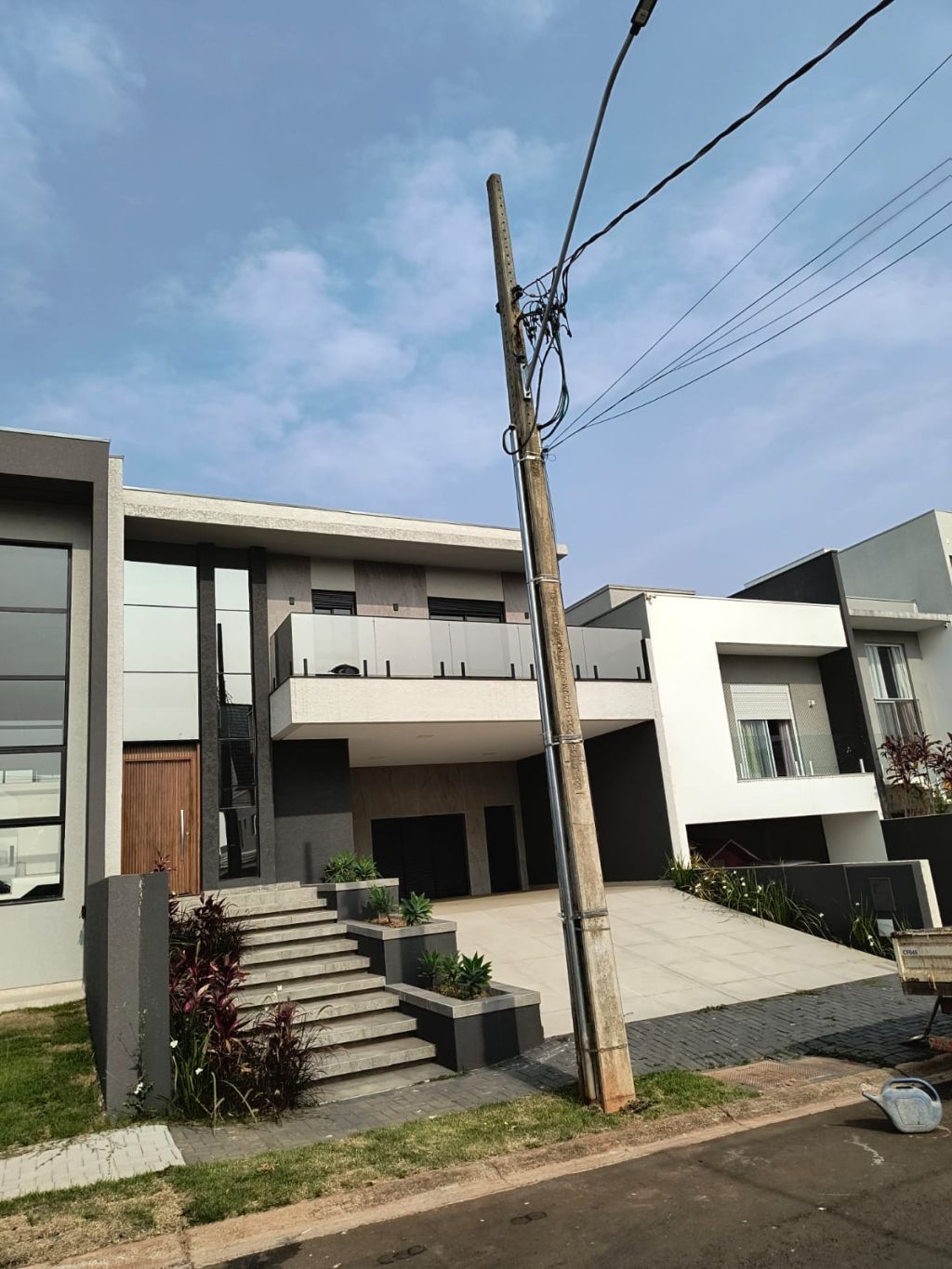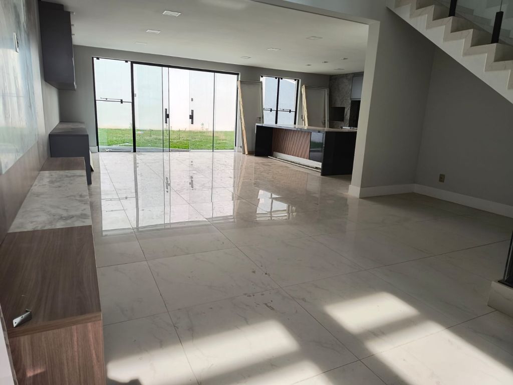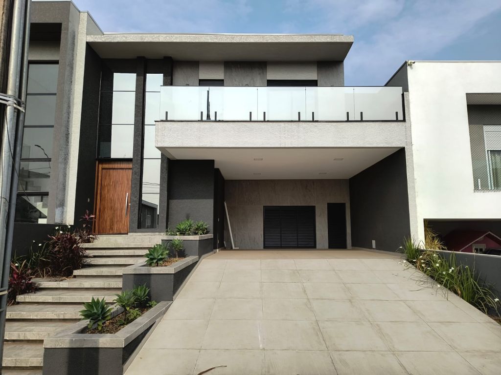 Uma residência em alvenaria de fino acabamento contendo no pavimento térreo hall de entrada com armários, sala de estar, sala de jantar, lavabo, cozinha tipo americana, lavanderia, espaço gourmet com churrasqueira, quintal e garagem coberta para 02 carros pavimento superior 03 amplas suítes com varanda com armários.