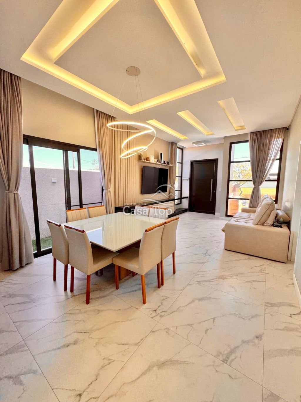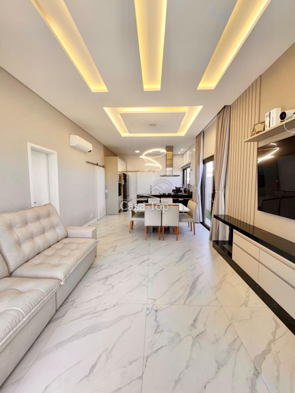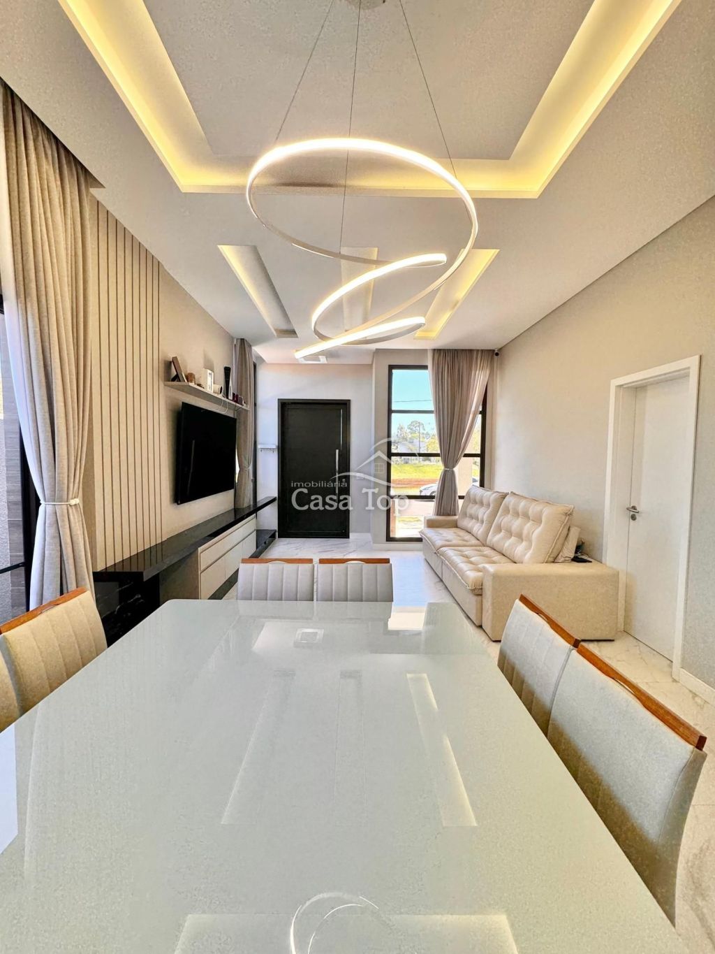 Residência medindo 150m², contendo 3 quartos (sendo 1 suíte), sala para 2 ambientes em conceito aberto com a cozinha, espaço gourmet com churrasqueira, despensa, área de serviço, lavabo, BWC social e 2 vagas de garagem.