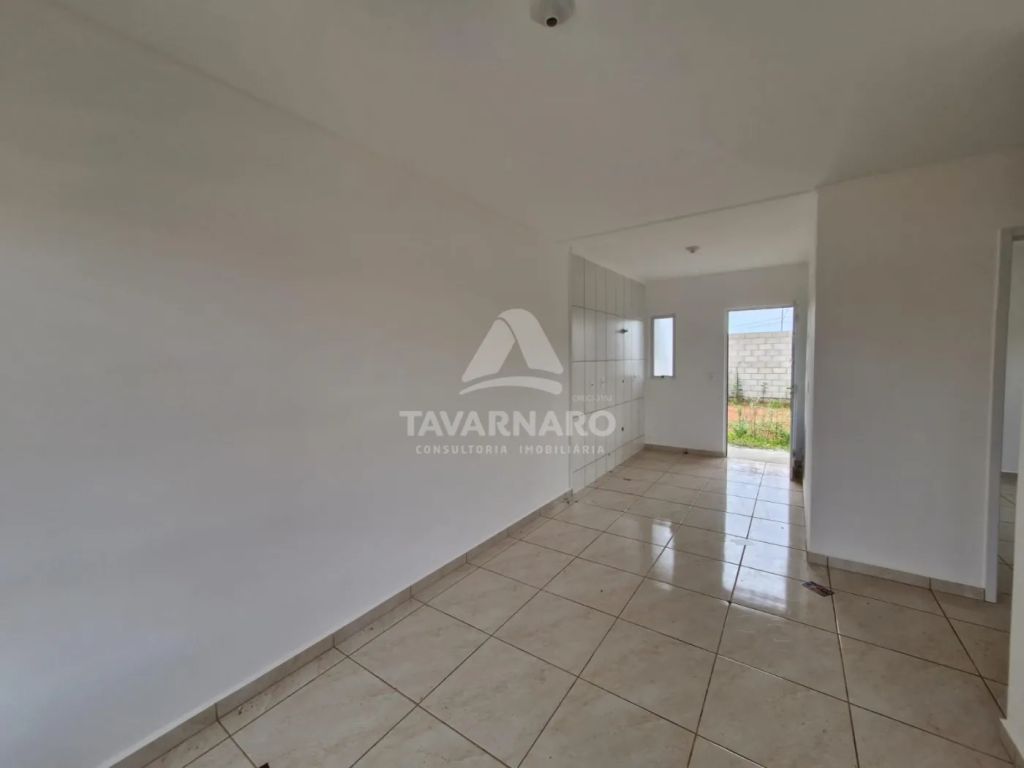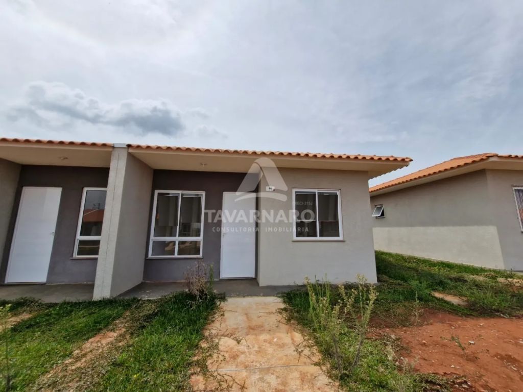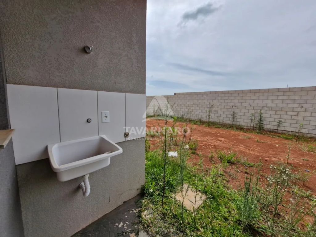 Imóvel novo com 44,58m² construídos, contendo 2 quartos, sala, cozinha, banheiro, área de serviço e 2 vagas de garagem.
