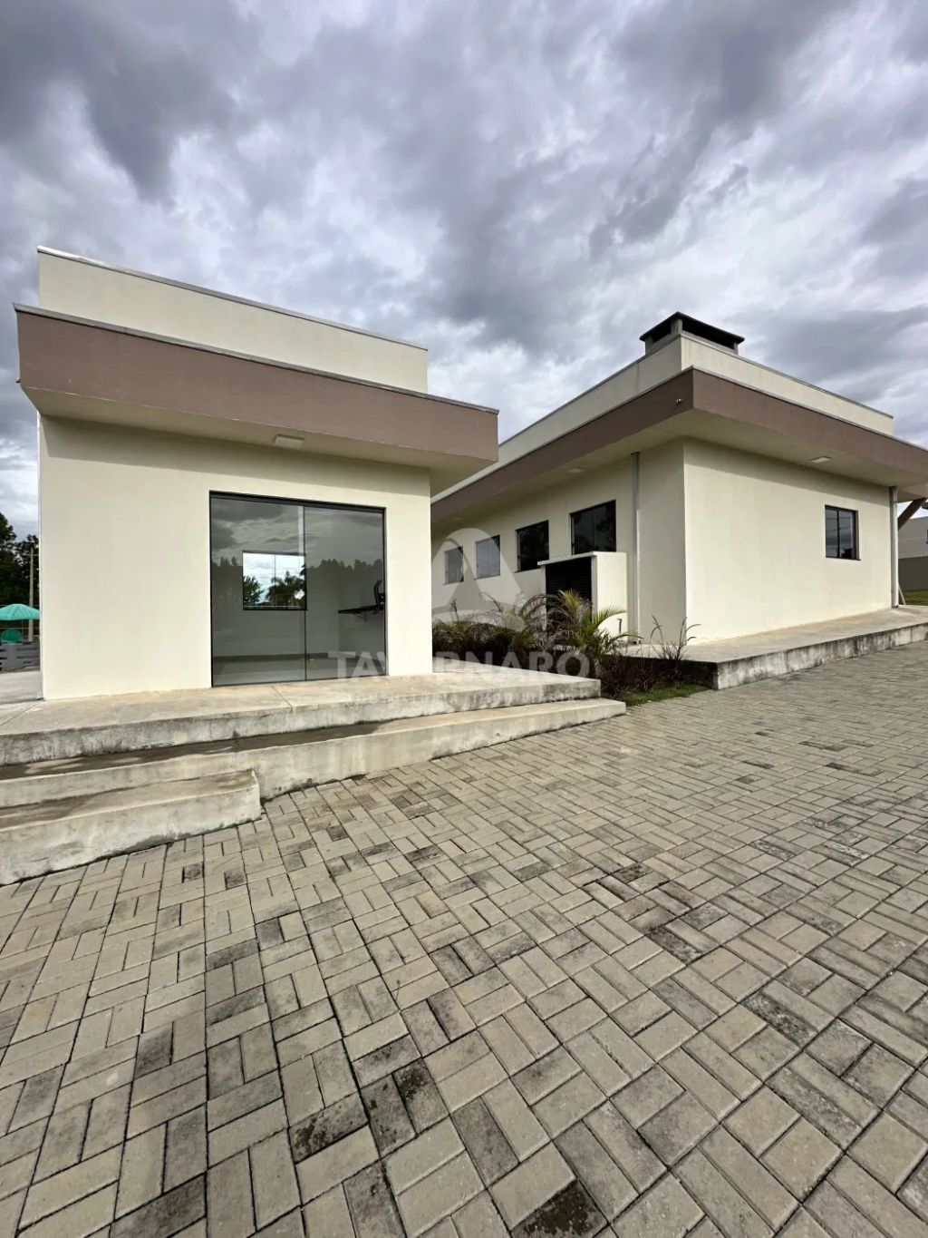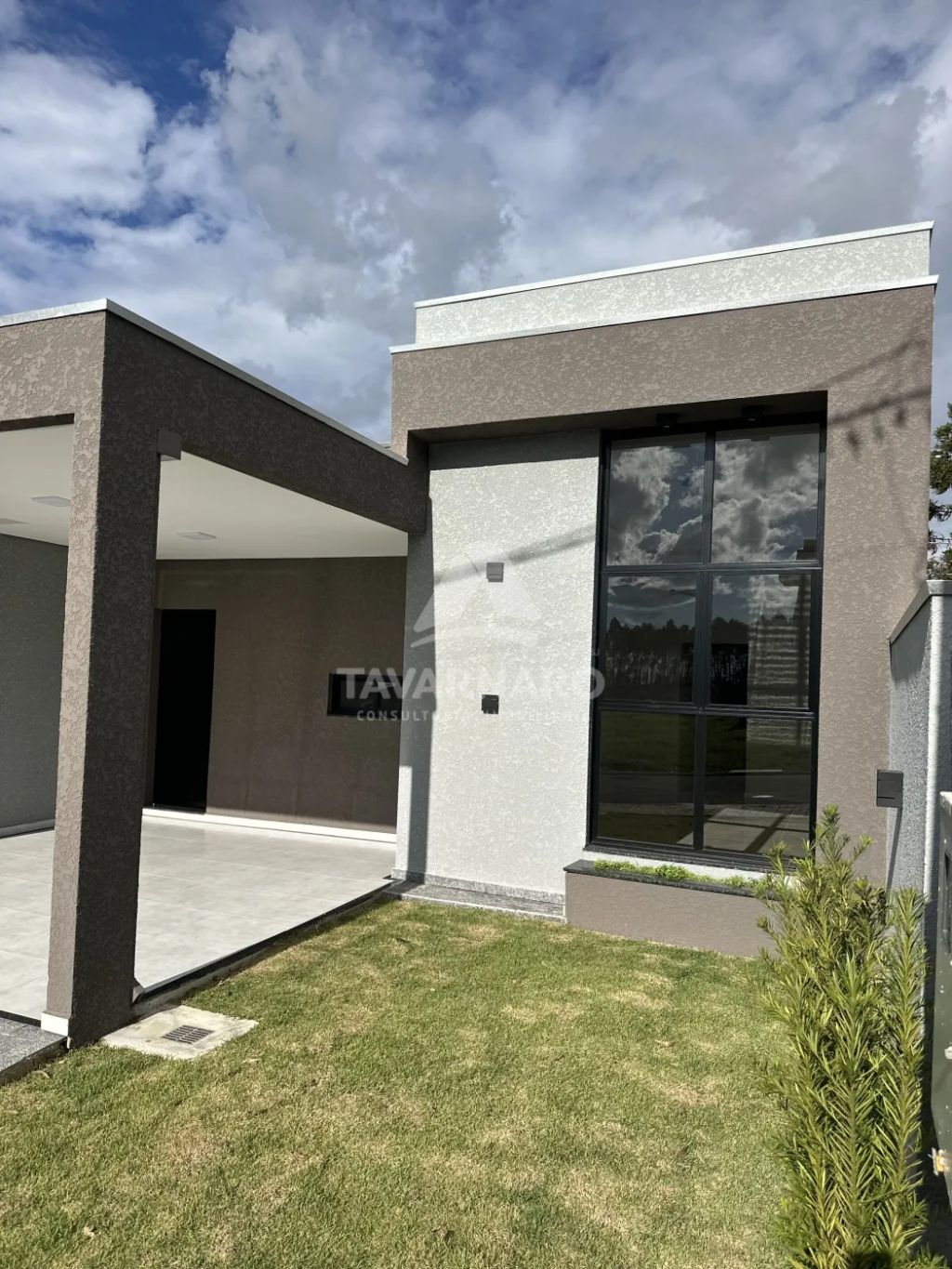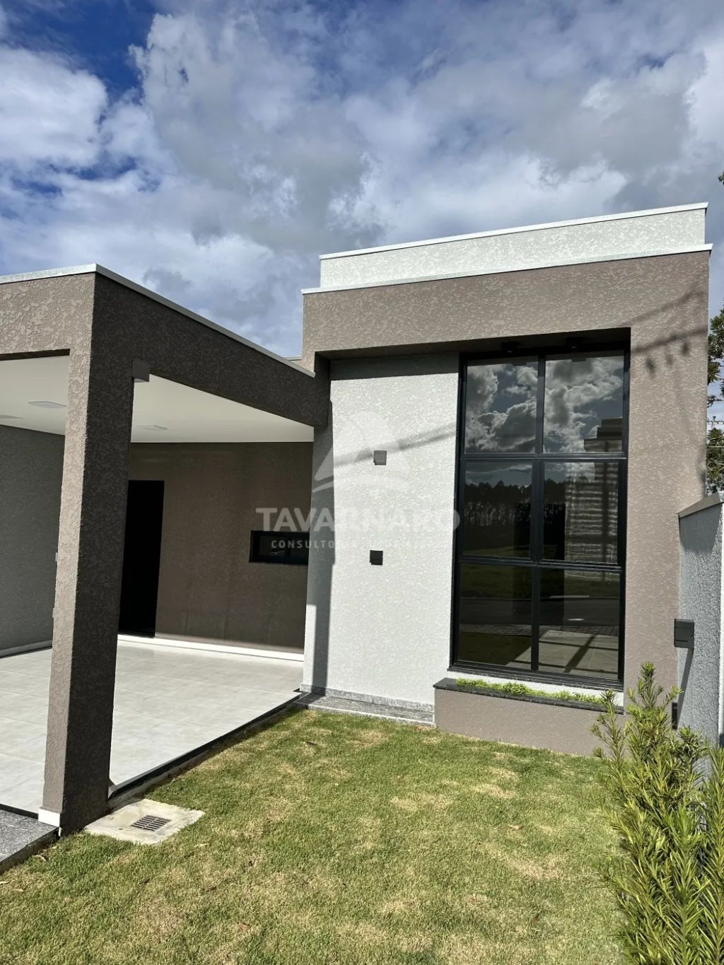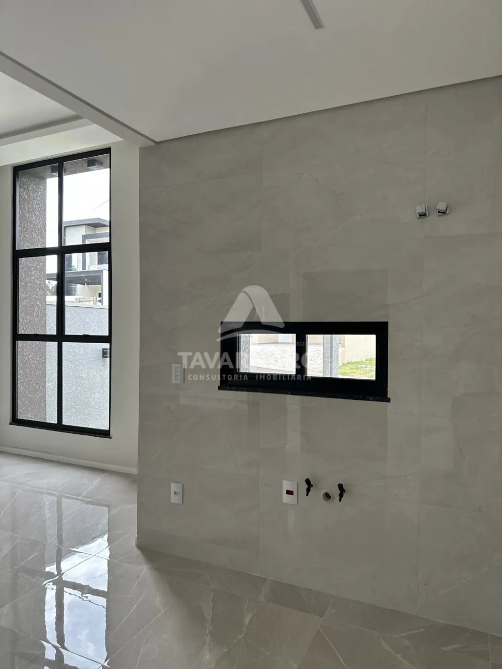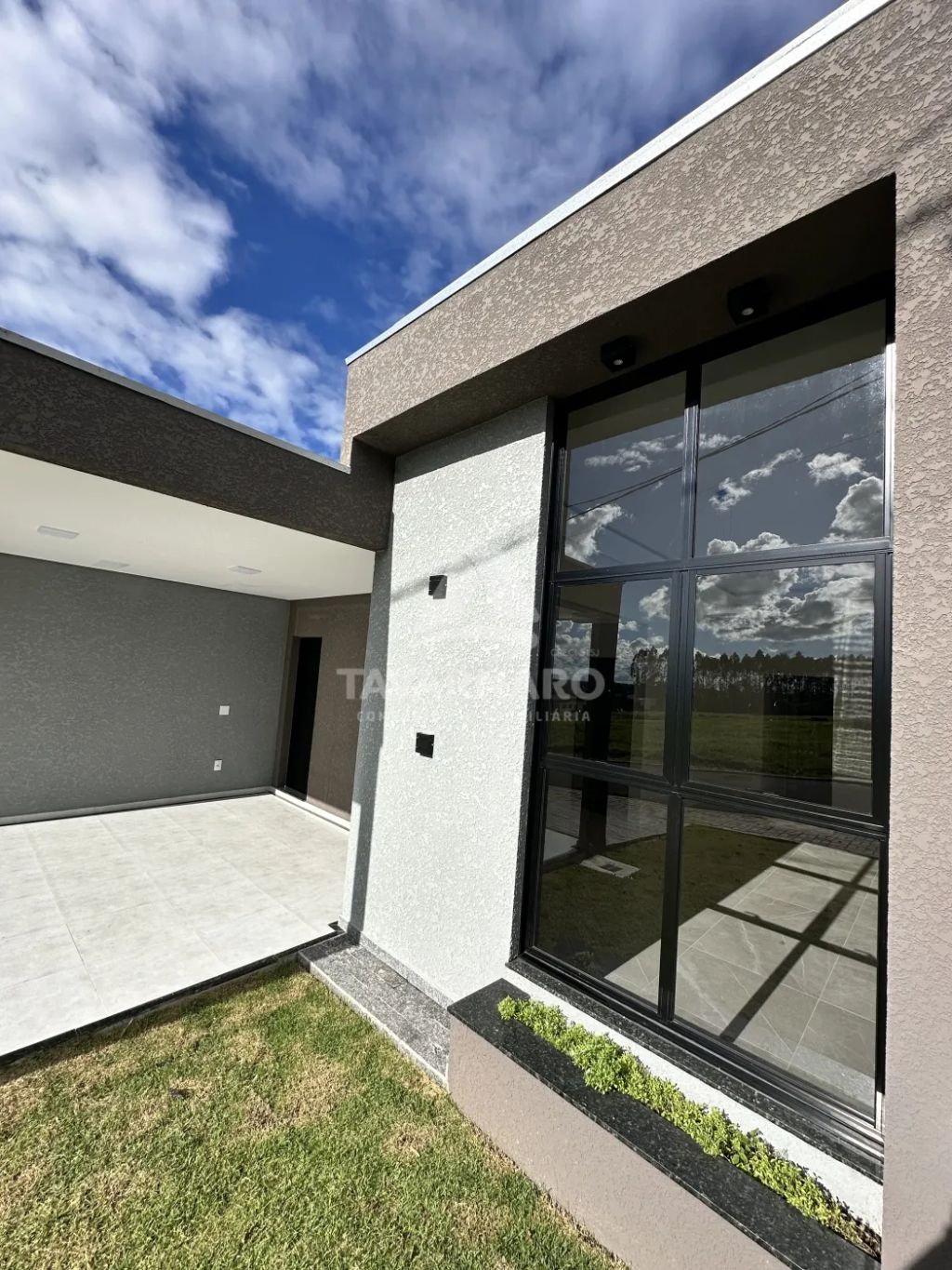 A casa conta com 3 dormitórios, sendo 1 suíte, todos preparados para instalação de ar-condicionado. A sala integrada para dois ambientes possui pé-direito duplo, trazendo amplitude e iluminação natural, além de ponto adicional para ar-condicionado.
