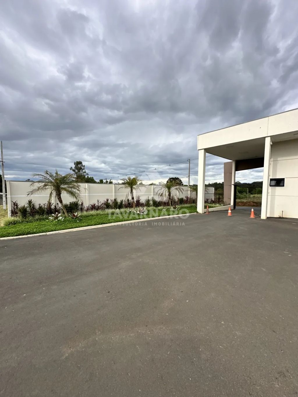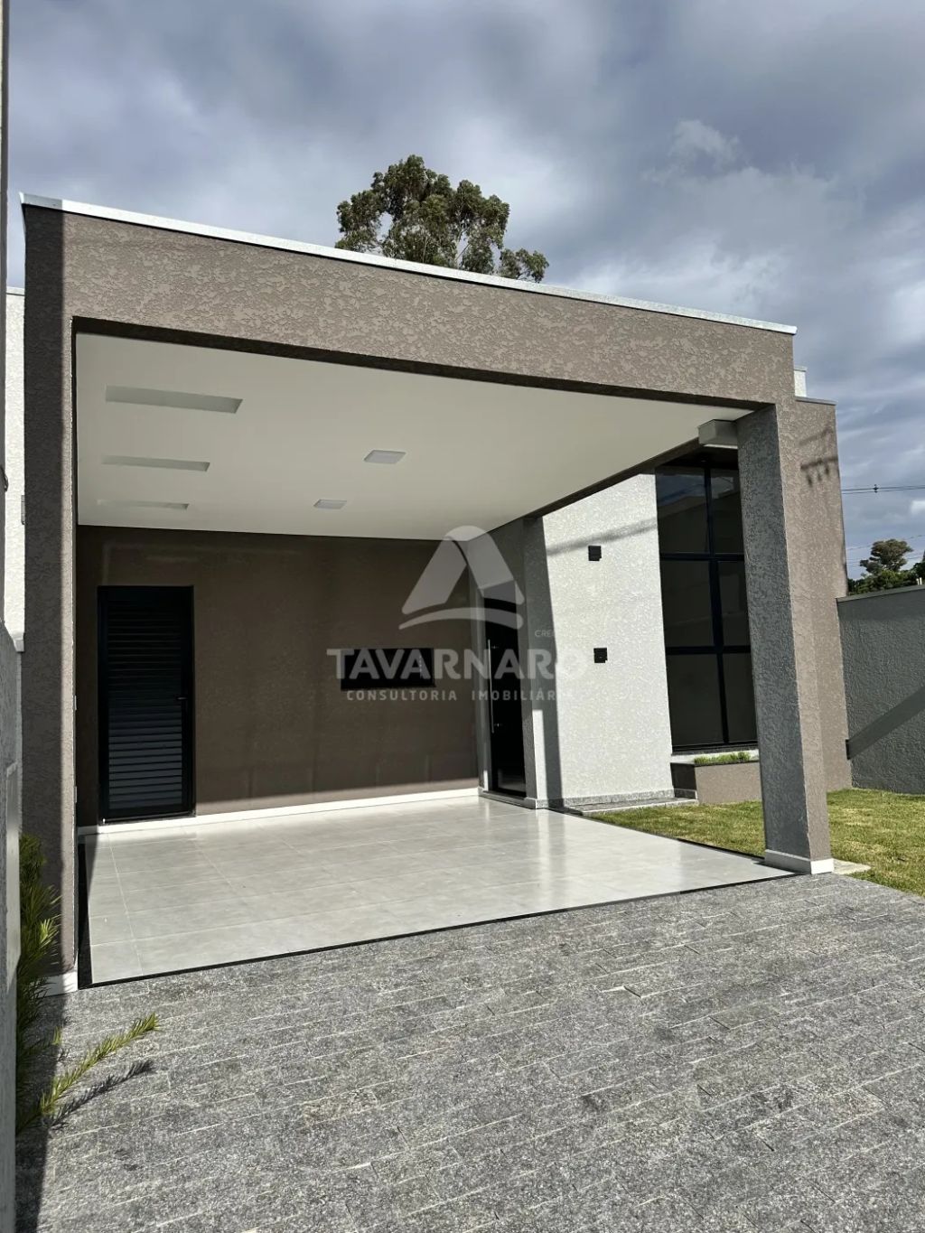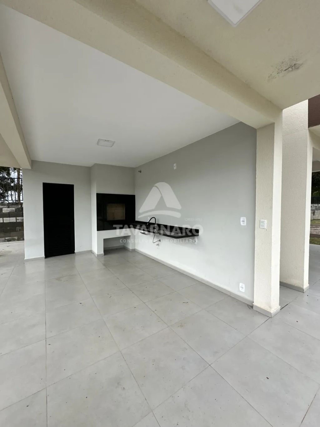 A garagem é coberta para dois carros.