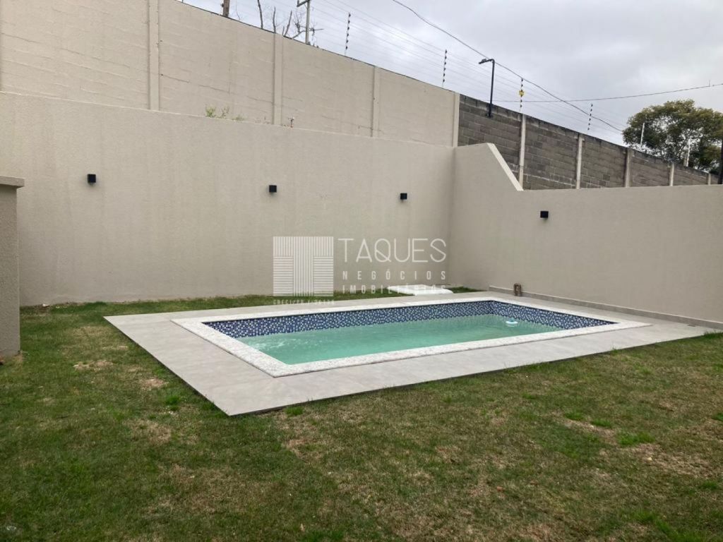 Já no andar inferior possui garagem para 2 carros, ampla sala para dois ambientes, lavabo, cozinha e despensa com móveis planejados, lavanderia com entrada independente, área gourmet com churrasqueira e móveis planejados, banheiro social completo, piscina com 2 pontos de hidro e infra-estrutura completa para aquecimento;