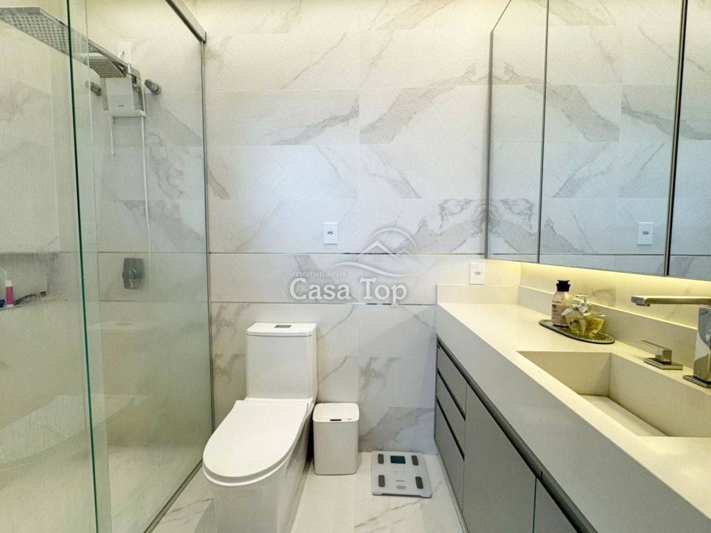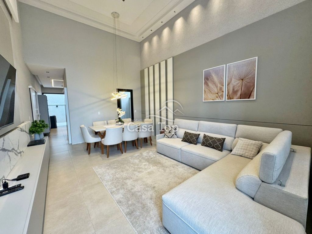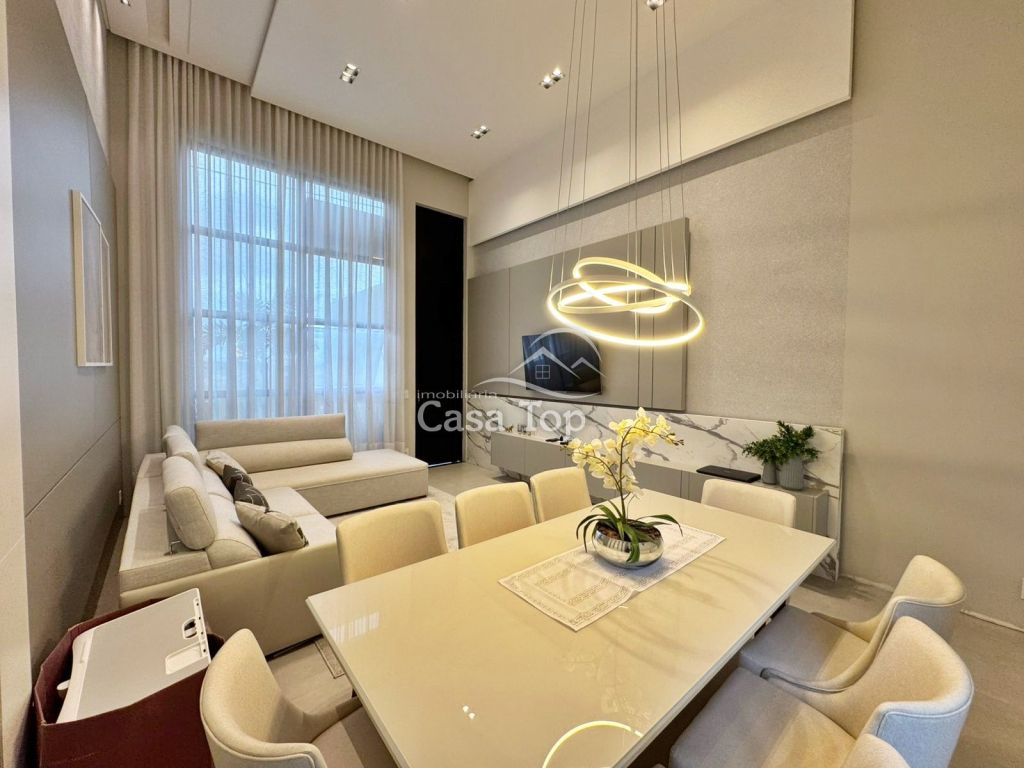 Residência no Condomínio Reserva Ecoville I, medindo aprox. 130m², contendo 3 quartos (sendo 1 suíte), sala para 2 ambientes, cozinha, área de serviço, BWC social e 2 vagas de garagem.