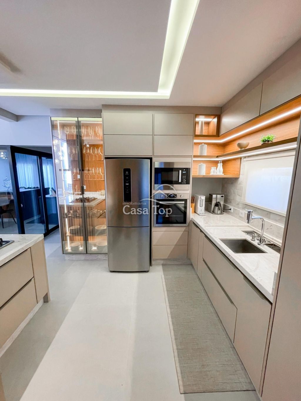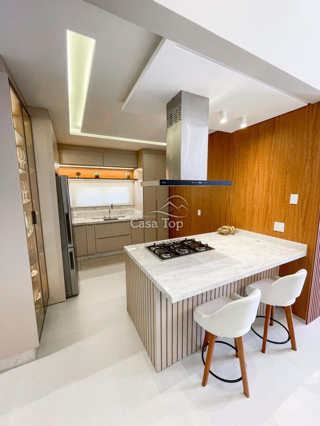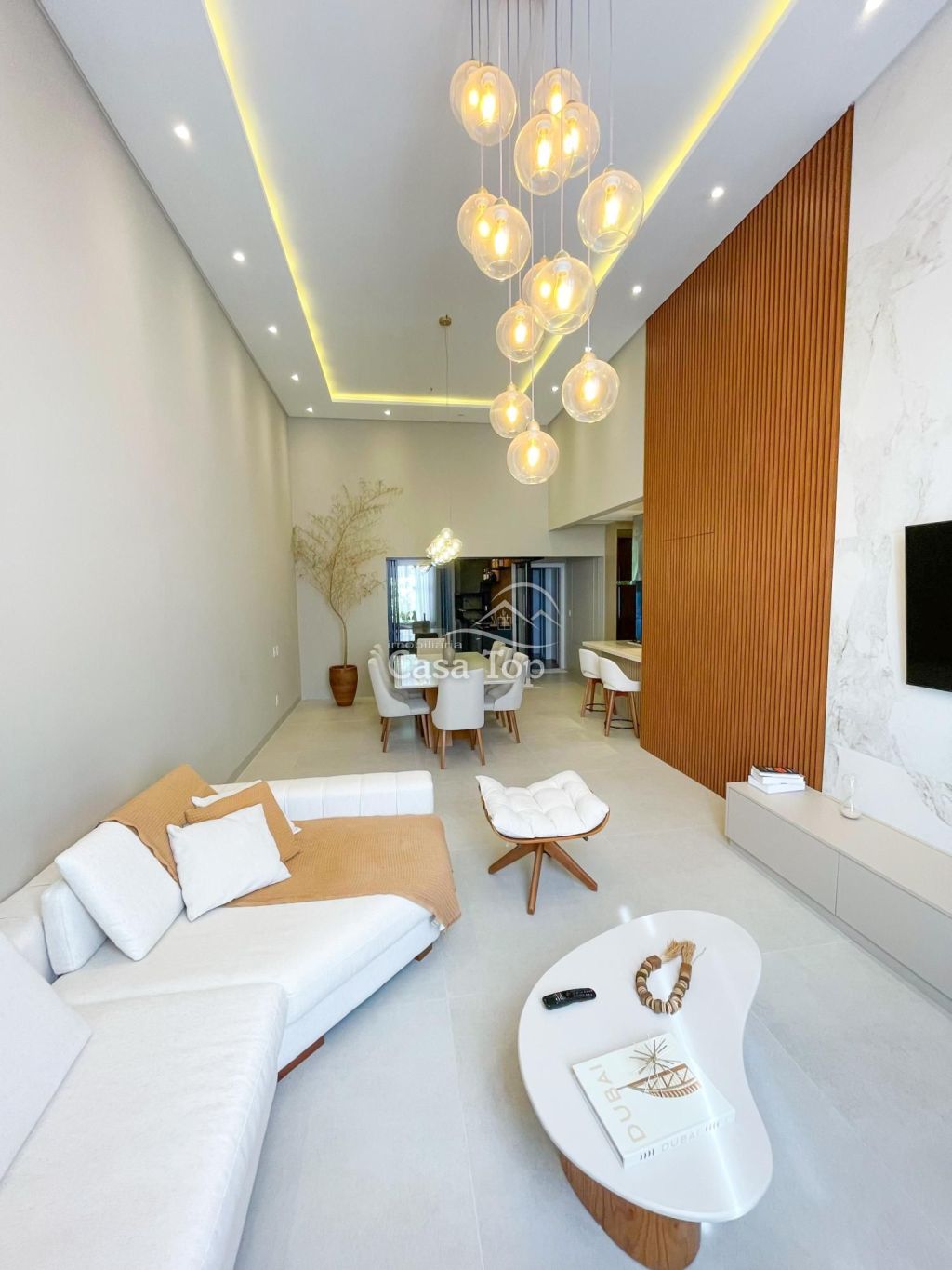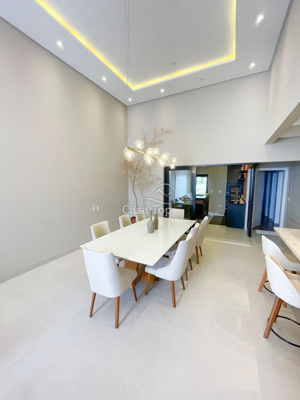 Residência semimobiliada medindo aprox. 178m², contendo 2 quartos (sendo 1 suíte com closet), sala para 2 ambientes com pé direito alto, cozinha planejada com ilha, espaço gourmet com churrasqueira, escritório, área de serviço, lavabo, BWC social e 2 vagas de garagem coberta.