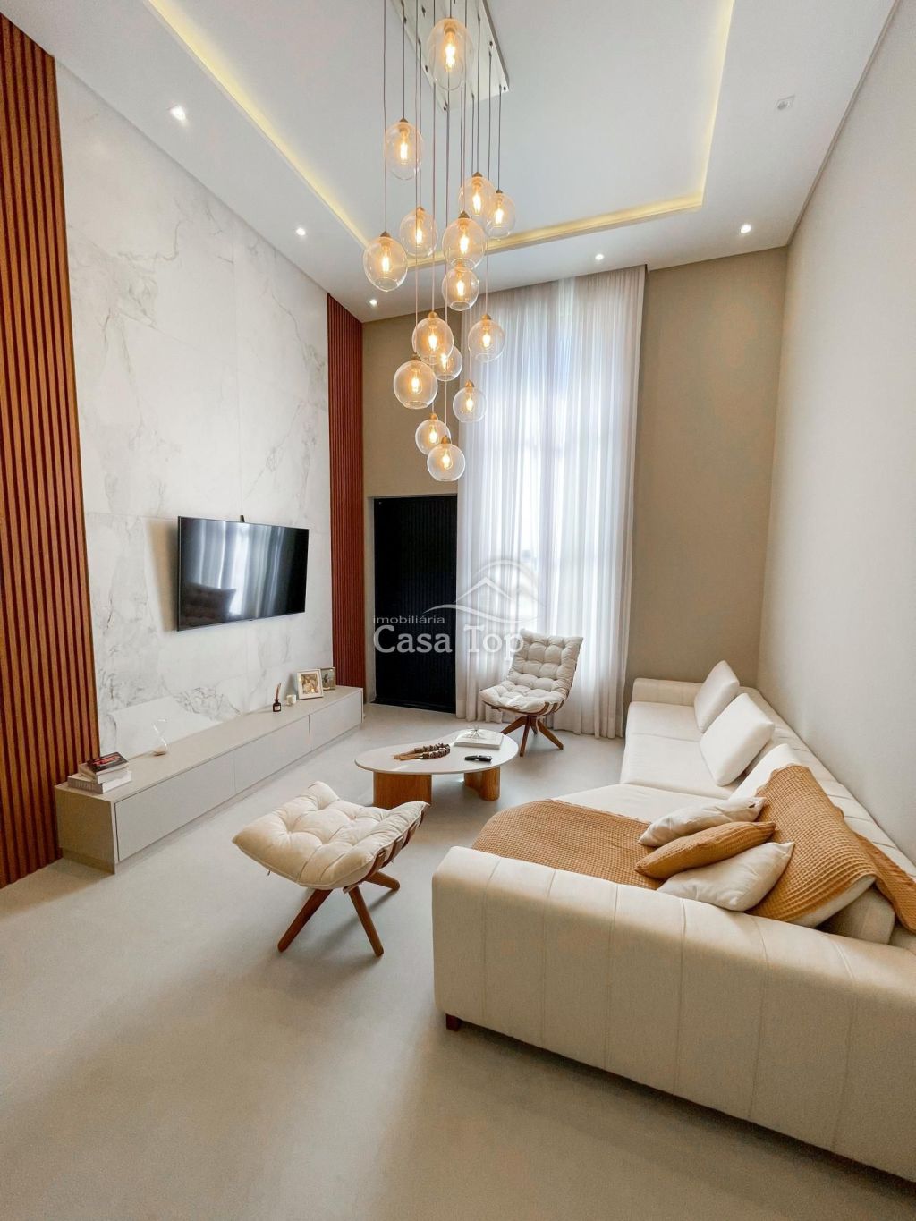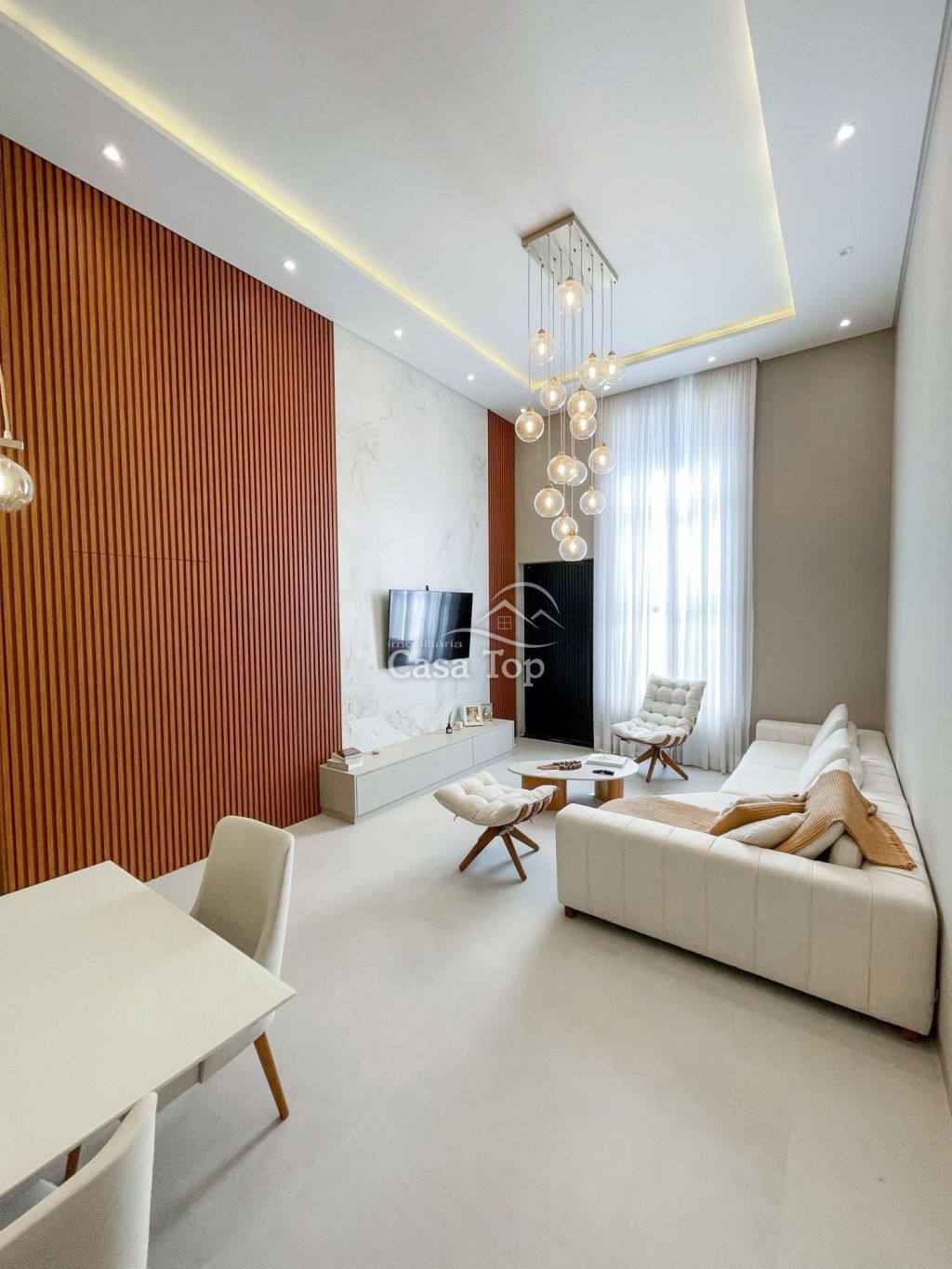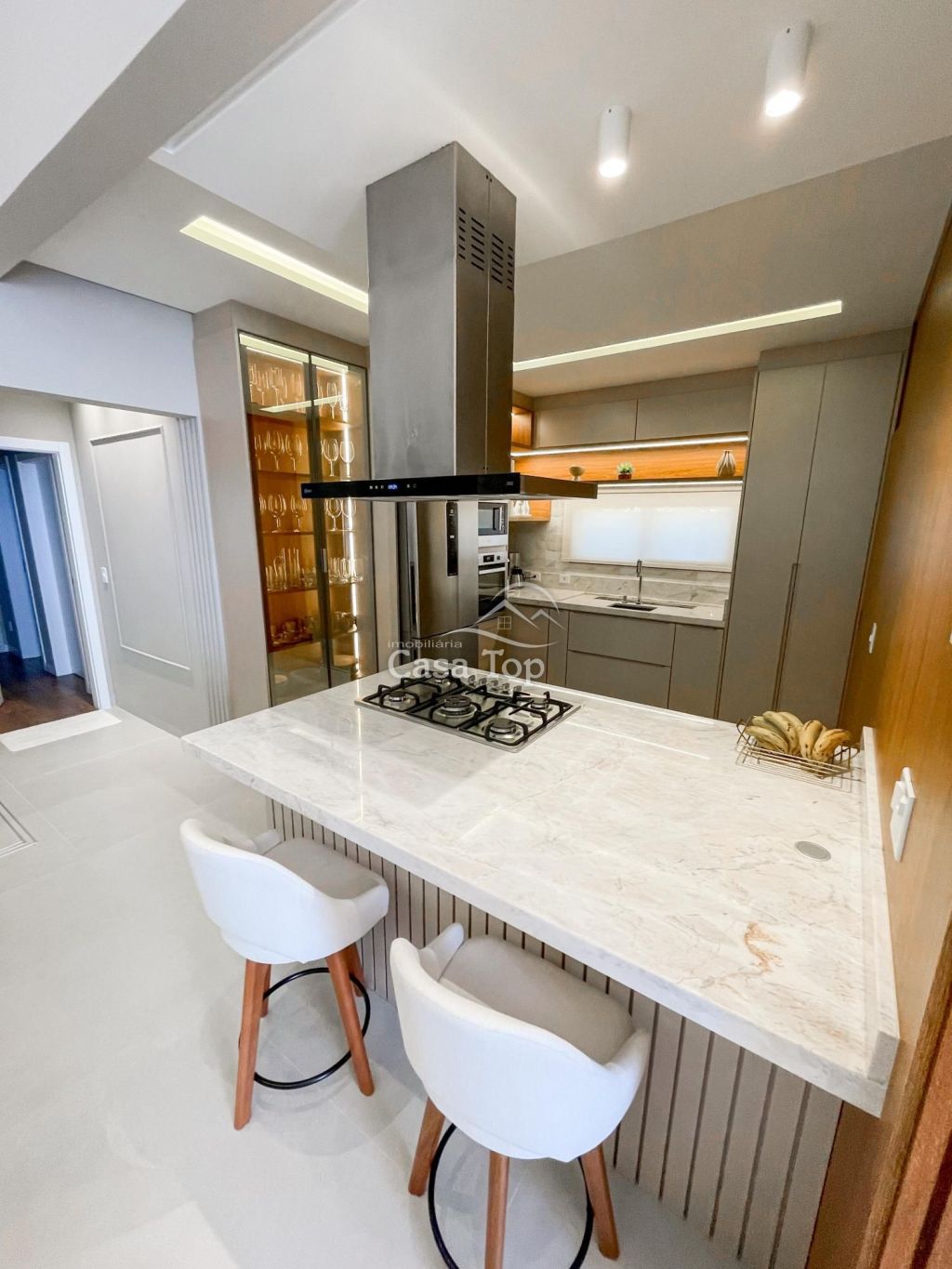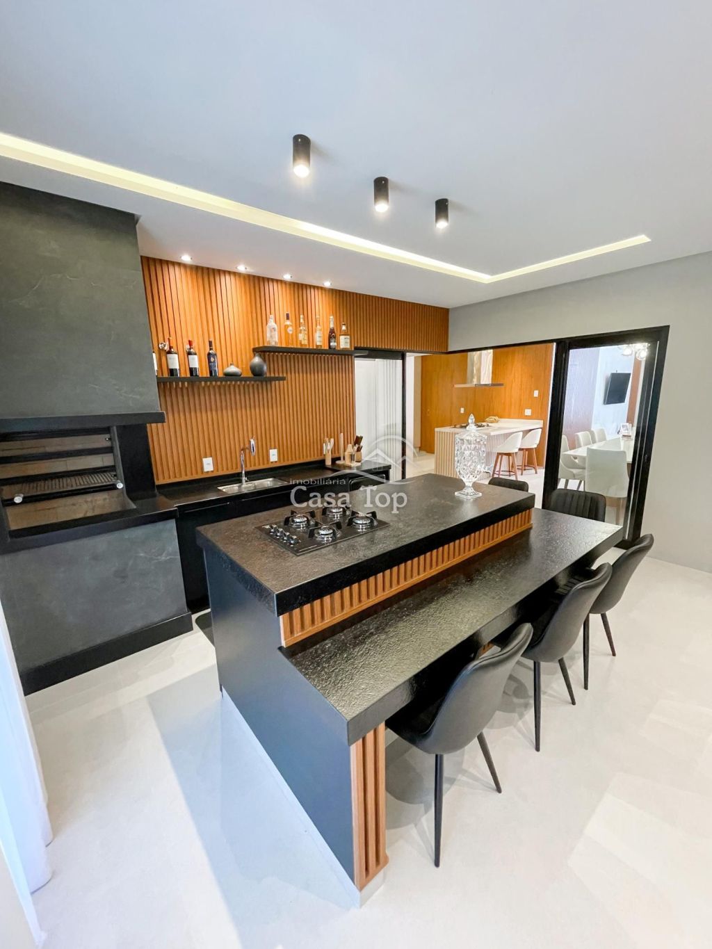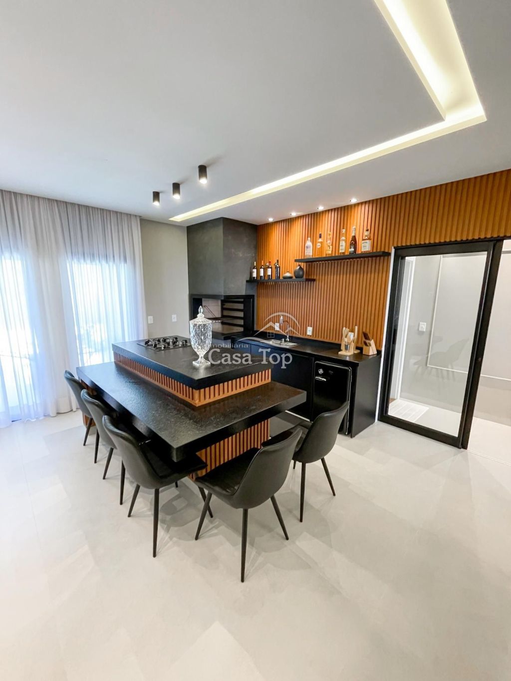 Residência semimobiliada medindo aprox. 178m², contendo 2 quartos (sendo 1 suíte com closet), sala para 2 ambientes com pé direito alto, cozinha planejada com ilha, espaço gourmet com churrasqueira, escritório, área de serviço, lavabo, BWC social e 2 vagas de garagem coberta.