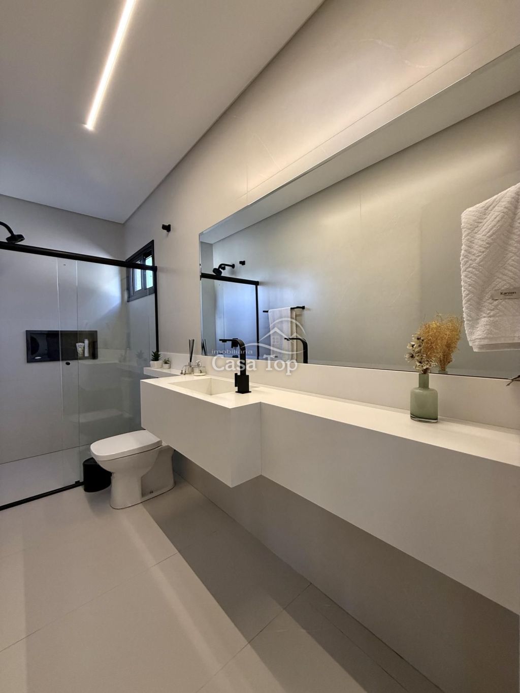 Residência medindo aprox. 276 m², contendo 4 quartos, sendo 3 suítes (1 com closet), ampla sala para 2 ambientes com cozinha gourmet integrada, área de serviço, lavabo, depósito, BWC social e 3 vagas de garagem.