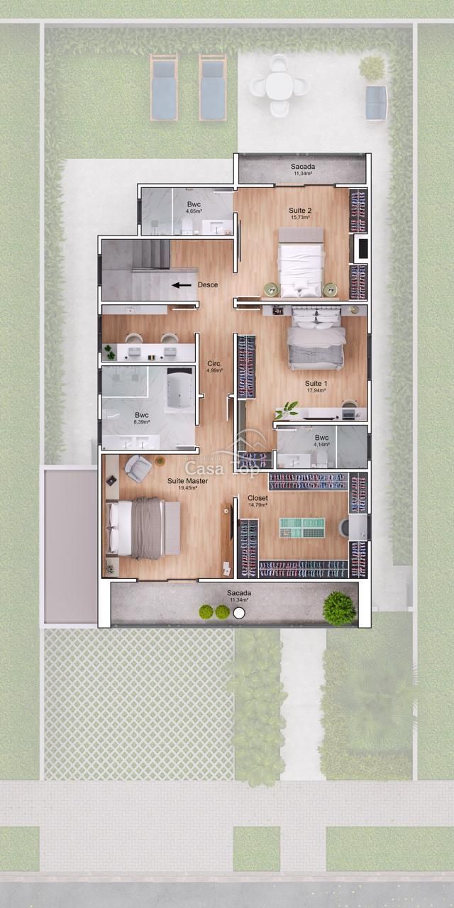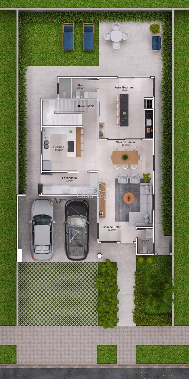 Residência medindo 273m², contendo 3 suítes (sendo 1 com closet), sacada, sala de estar, sala de jantar, cozinha, espaço gourmet, espaço externo nos fundos, área de serviço, lavabo e 4 vagas de garagem (sendo 2 cobertas).