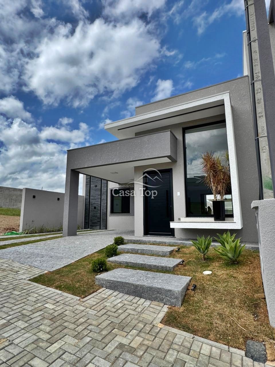 Residência medindo ², contendo 3 quartos (sendo 1 suíte), sala para dois ambientes em conceito aberto com a cozinha, espaço gourmet, área de serviço, BWC social e 2 vagas de garagem.