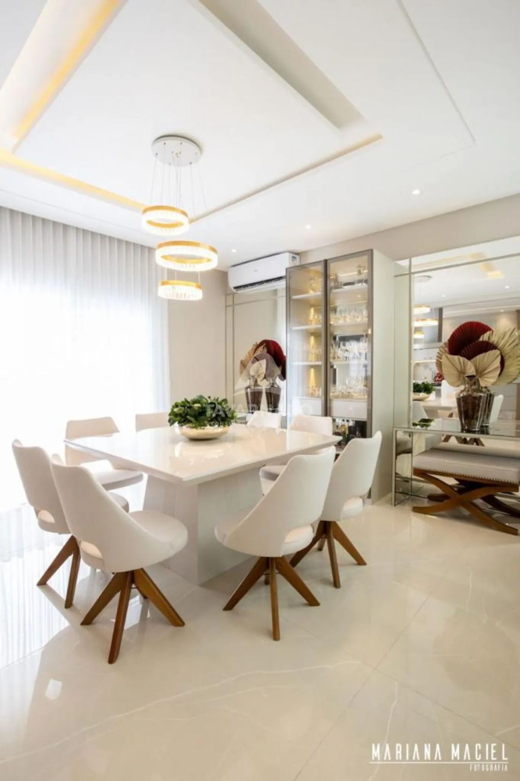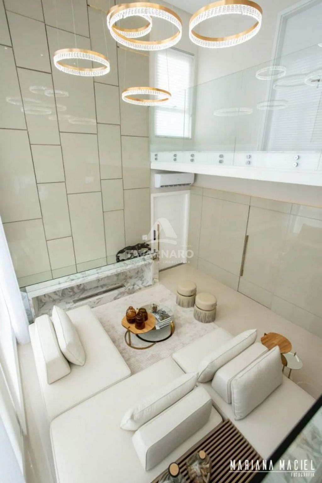 Cortina automatizada na sala do pé direito duplo,