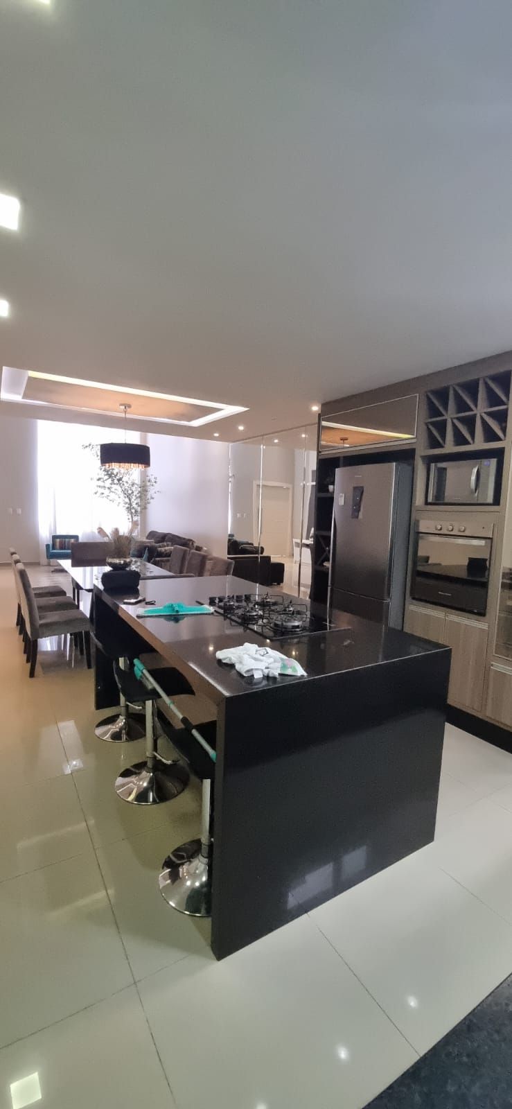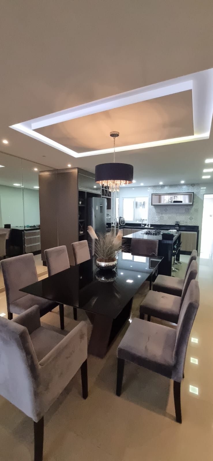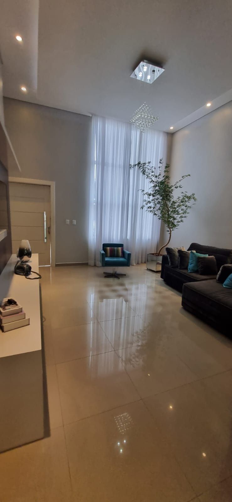 Possui 03 quartos mobiliados, sendo 01 deles 01 suíte master e um banheiro, sala com pé direito duplo totalmente mobiliada integrada à cozinha com móveis planejados e eletrodomésticos e lavabo. Churrasqueira anexada à lavanderia e a uma piscina aquecida com cascata.