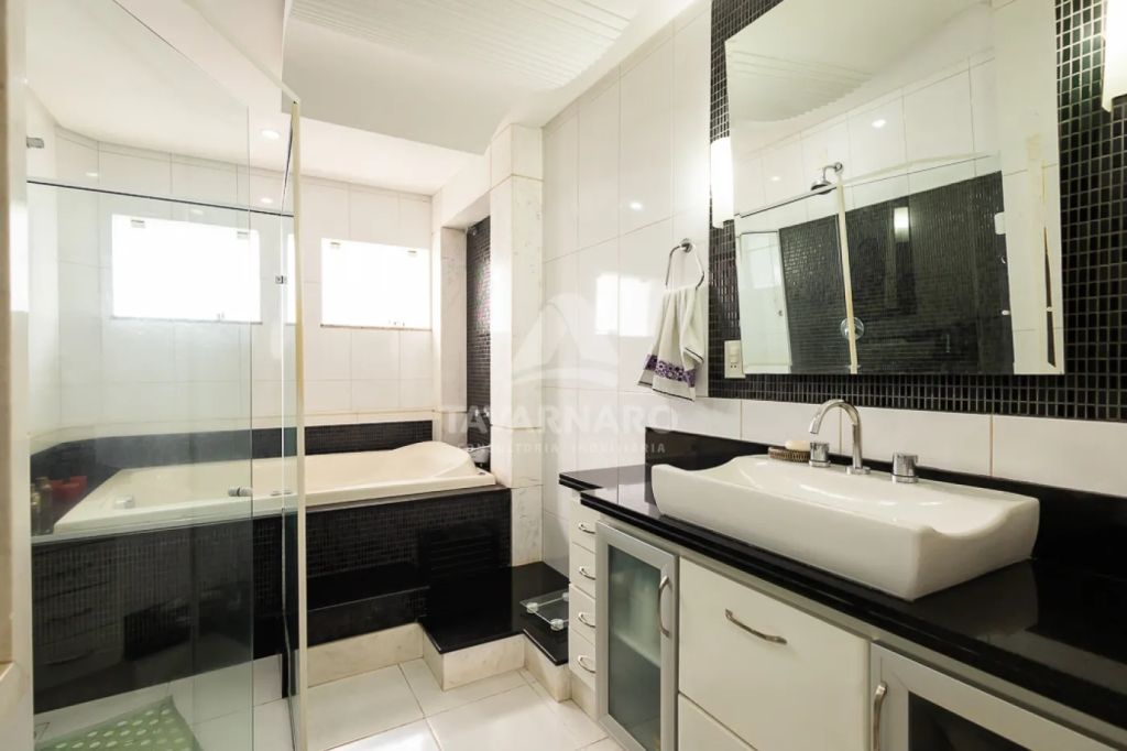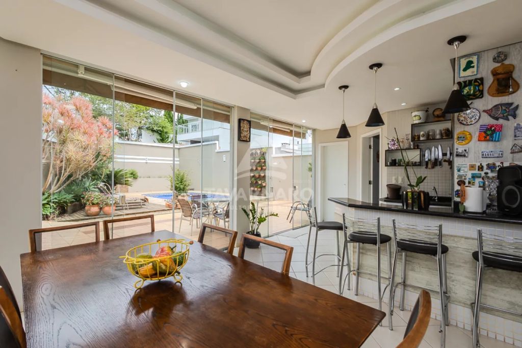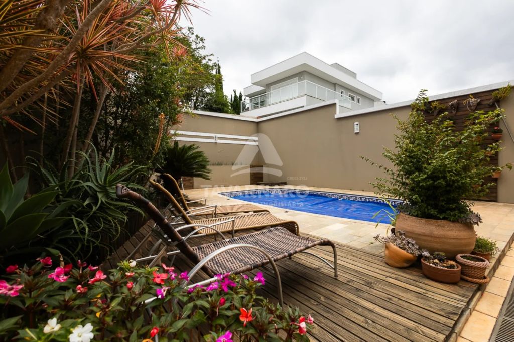 No piso inferior dispõe de sala de estar, sala de jantar, uma aconchegante sala de Tv com lareira, lavabo, cozinha com armários, área de serviço. Conta ainda com espaço gourmet com churrasqueira, piscina e banheiro. Além disso, oferece garagem coberta para 2 veículos e mais vagas descobertas.