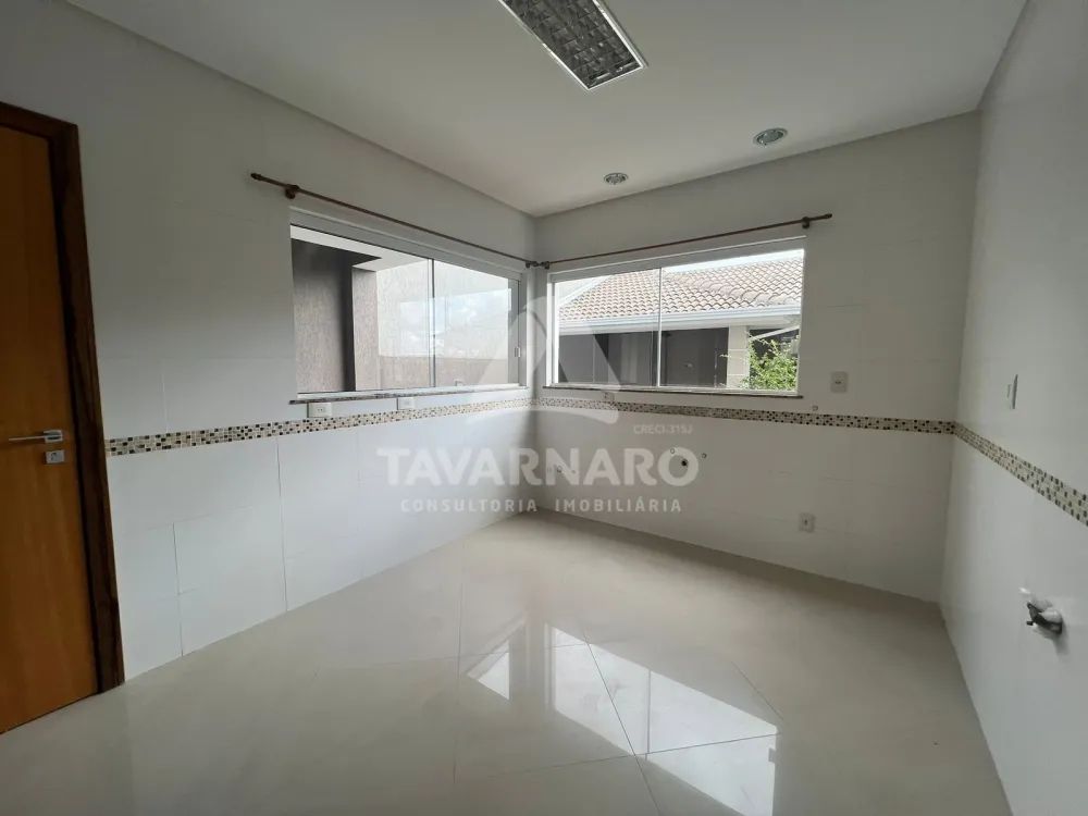 No piso térreo sala de estar com lareira, sala de jantar, escritório, lavabo.