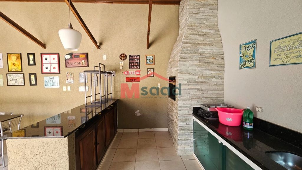- Sala de estar e jantar integradas;- Sala de TV;- Cozinha com armários planejados;- Lavabo;- 3 quartos (sendo 1 suíte);- Banheiro social;- Área de serviço;* Possui uma Edícula medindo aproximadamente 57,40 m², distribuída em:- Espaço gourmet com churrasqueira;-2 quartos;- 1 banheiro;* Infraestrutura:- Piscina privativa;- Garagem coberta para 2 carros;* Infraestrutura do Condomínio:- Portaria 24 horas;- Salão de festas;- Quadra de areia;- Quadra de futebol;- Playground;Maiores informações e visita entre em contato pelo telefone .Estuda proposta.