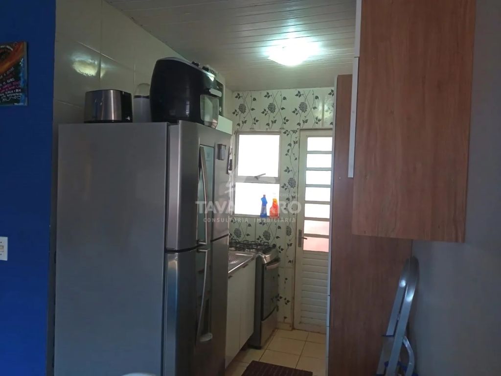 Esta casa possui um layout funcional que proporciona conforto e praticidade. Ao entrar, você será recebido por uma sala de estar iluminada, ideal para momentos em família. A cozinha é integrada, facilitando a convivência e o preparo das refeições. Os dois dormitórios são aconchegantes e oferecem espaço para armários, garantindo um ambiente organizado e confortável.