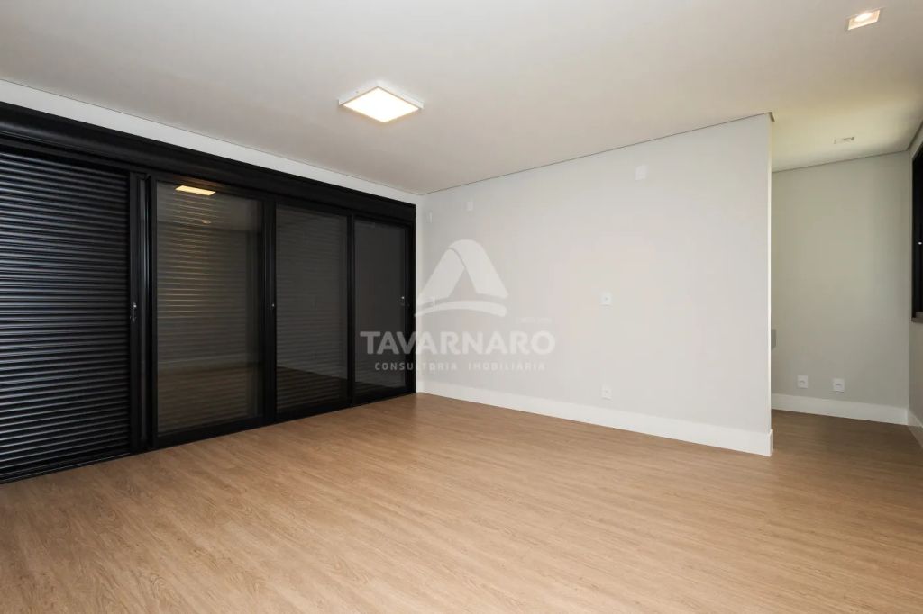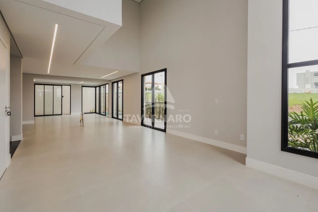 Projeto moderno, com sala com pé direito duplo, infraestrutura para automação e ar condicionado.