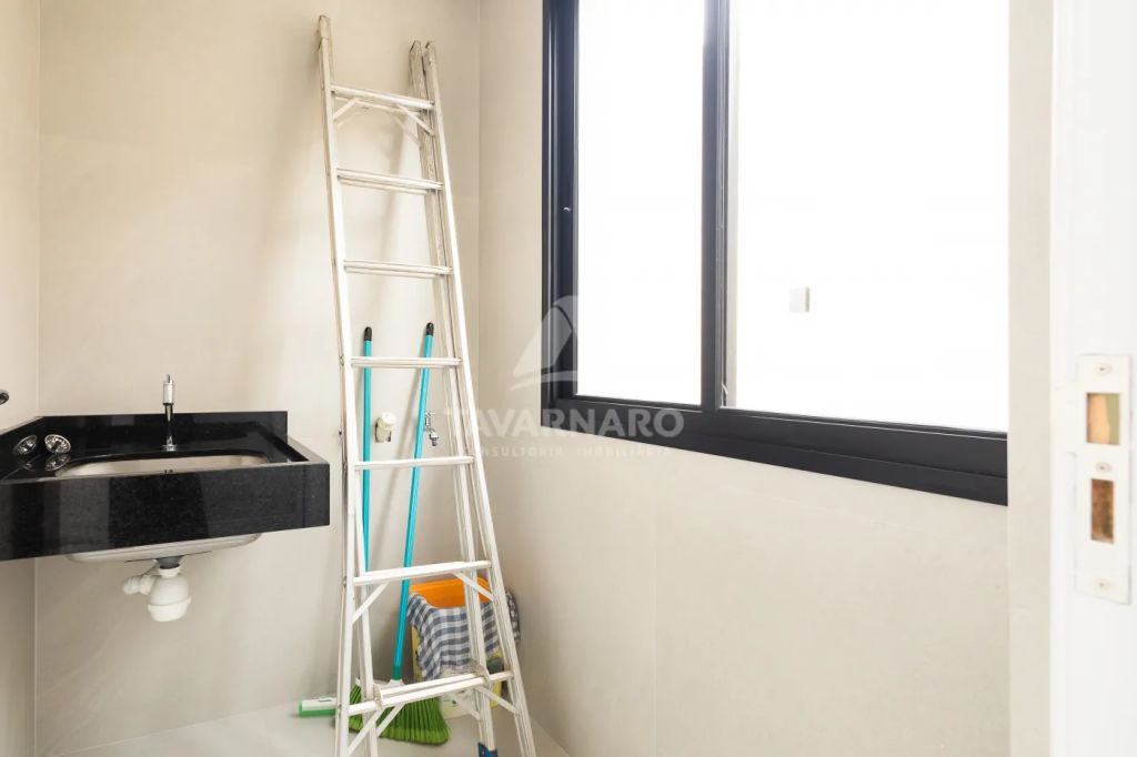 No pavimento inferior: Sala de estar e jantar e cozinha com ilha integrados, espaço gourmet com churrasqueira e saída para área externa com piscina, lavabo, lavanderia e 1 suíte, possui 2 vagas de garagem lado a lado;