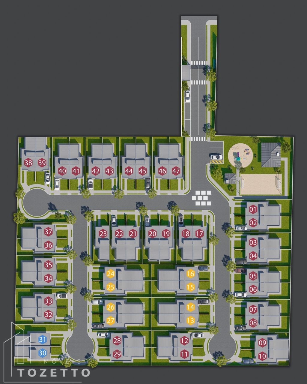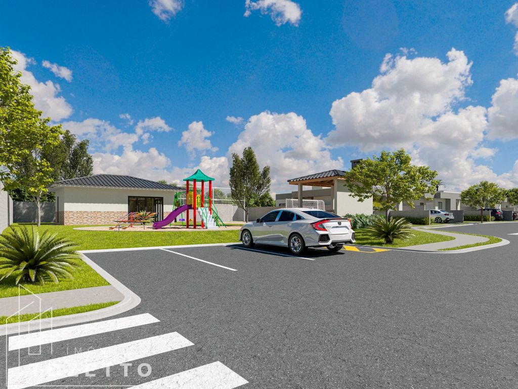Fachada moderna em platibanda, cerâmicas e louças de 1ª linha. O condomínio contará com playground, campo de areia, quiosque com churrasqueira, salão de festas e 6 vagas de estacionamento para visitante.