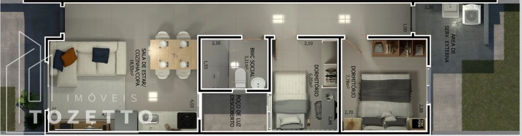 Ambientes: Sala acolhedora, cozinha prática e banheiro funcional Área de Serviço: Ideal para suas necessidades do dia a dia