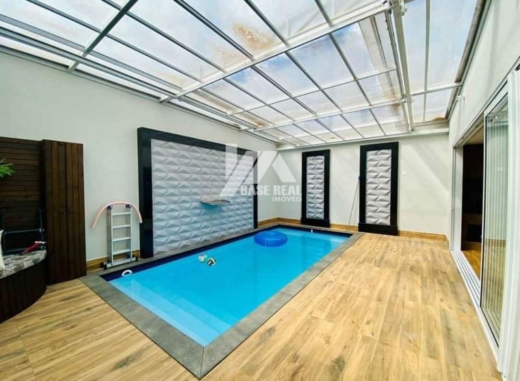 ?Piscina coberta com aquecimento solar.