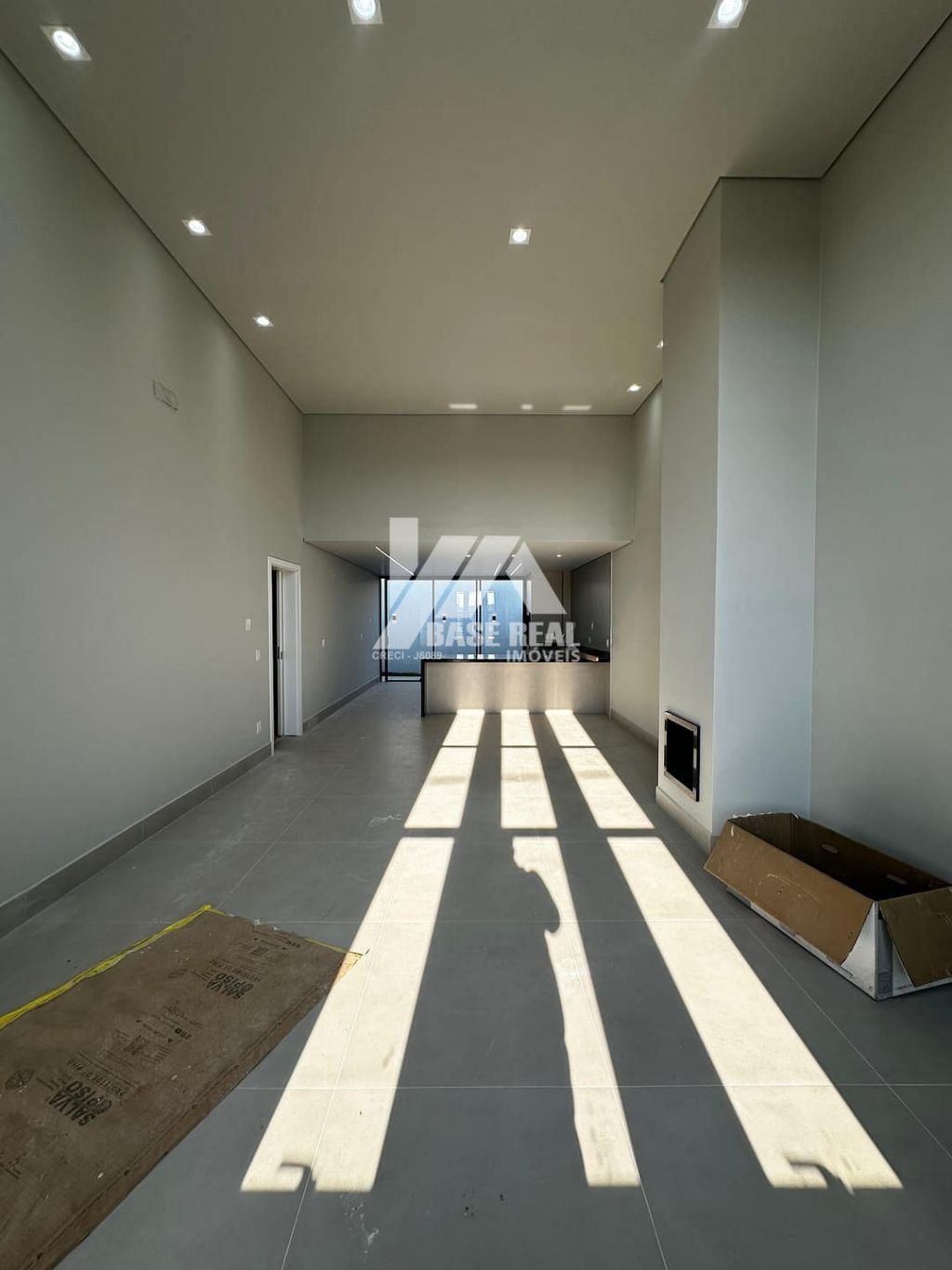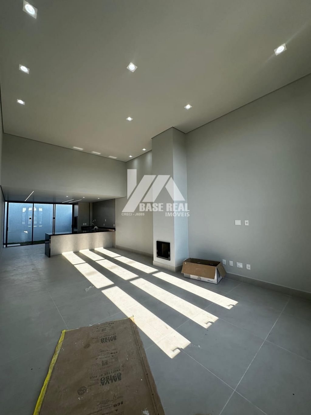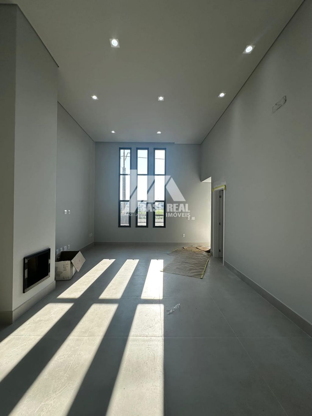 Sala com Pé Direito Alto: Com lareira, proporcionando um ambiente acolhedor.