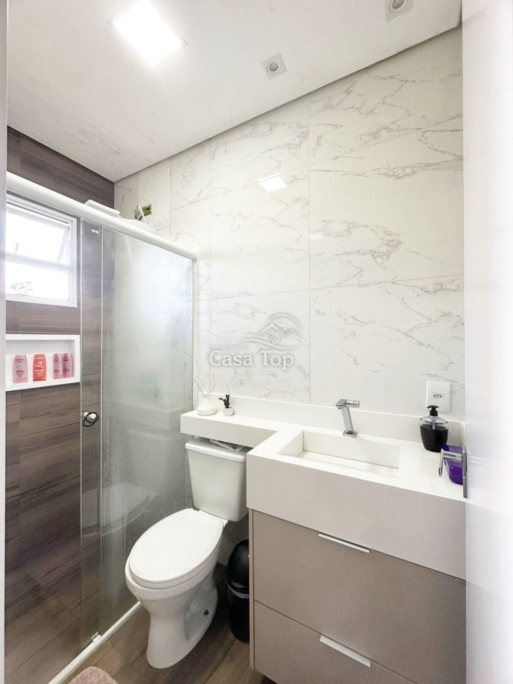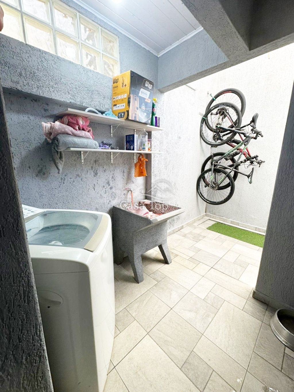 Casa medindo aprox. 80m², contendo 2 quartos (sendo 1 suíte), sala ampla, cozinha, churrasqueira, área de serviço, BWC social e 1 vaga de garagem.