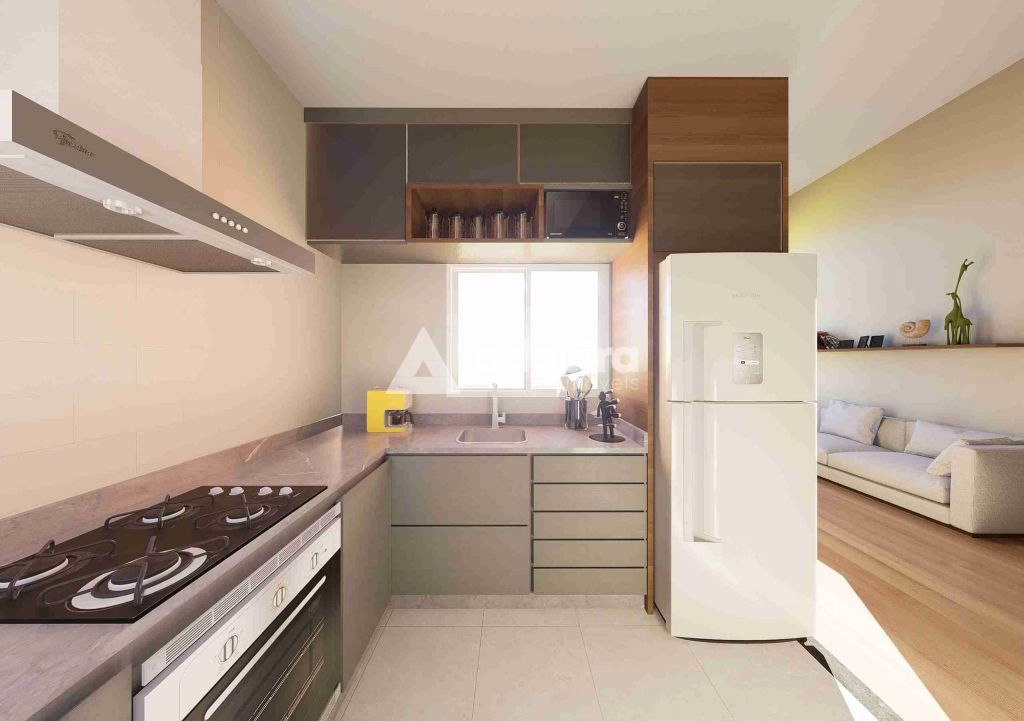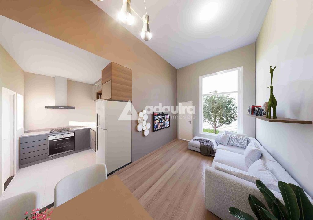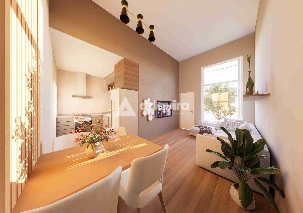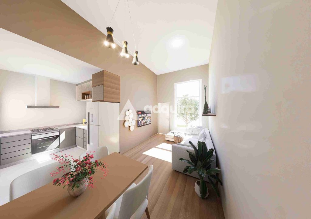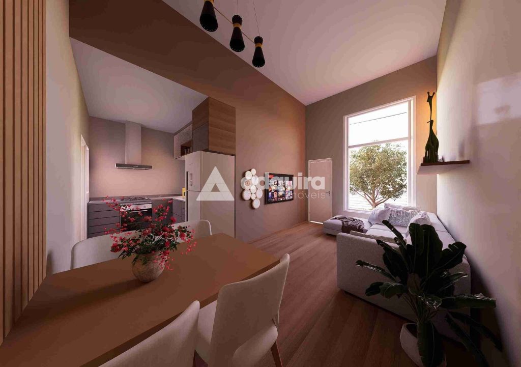 Sala e cozinha integradas, proporcionando ambientes amplos e aconchegantes