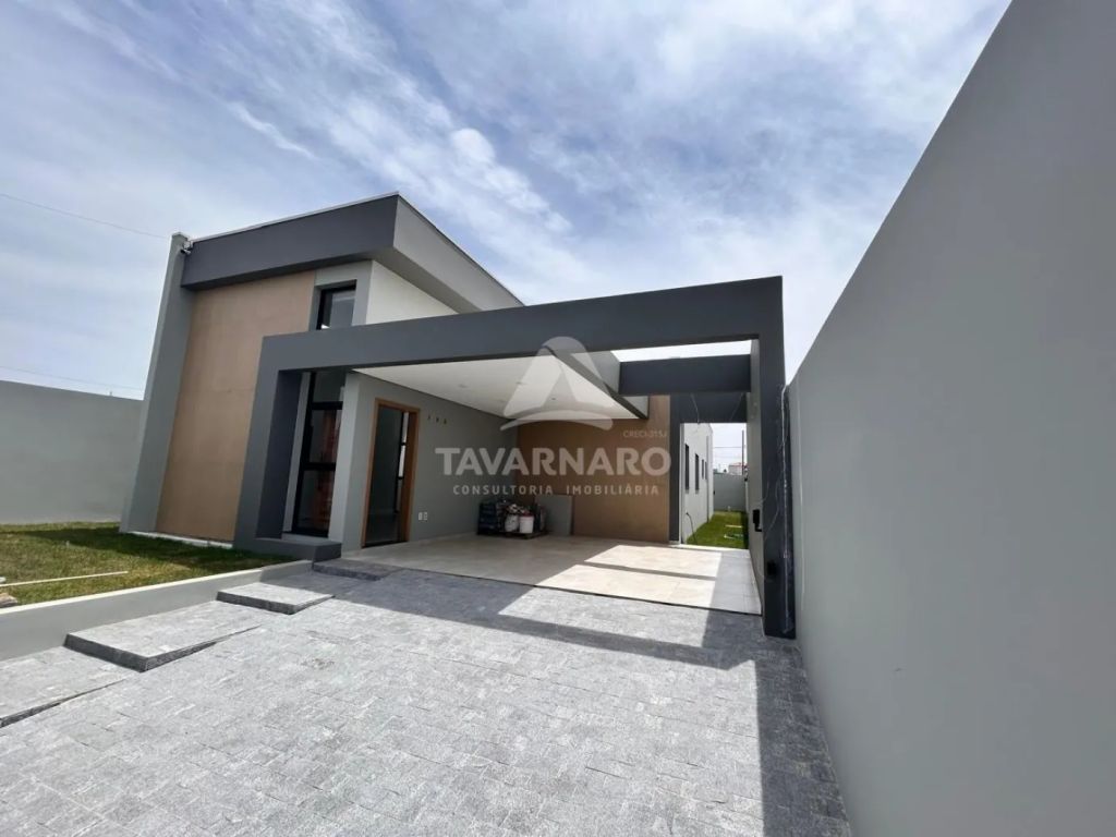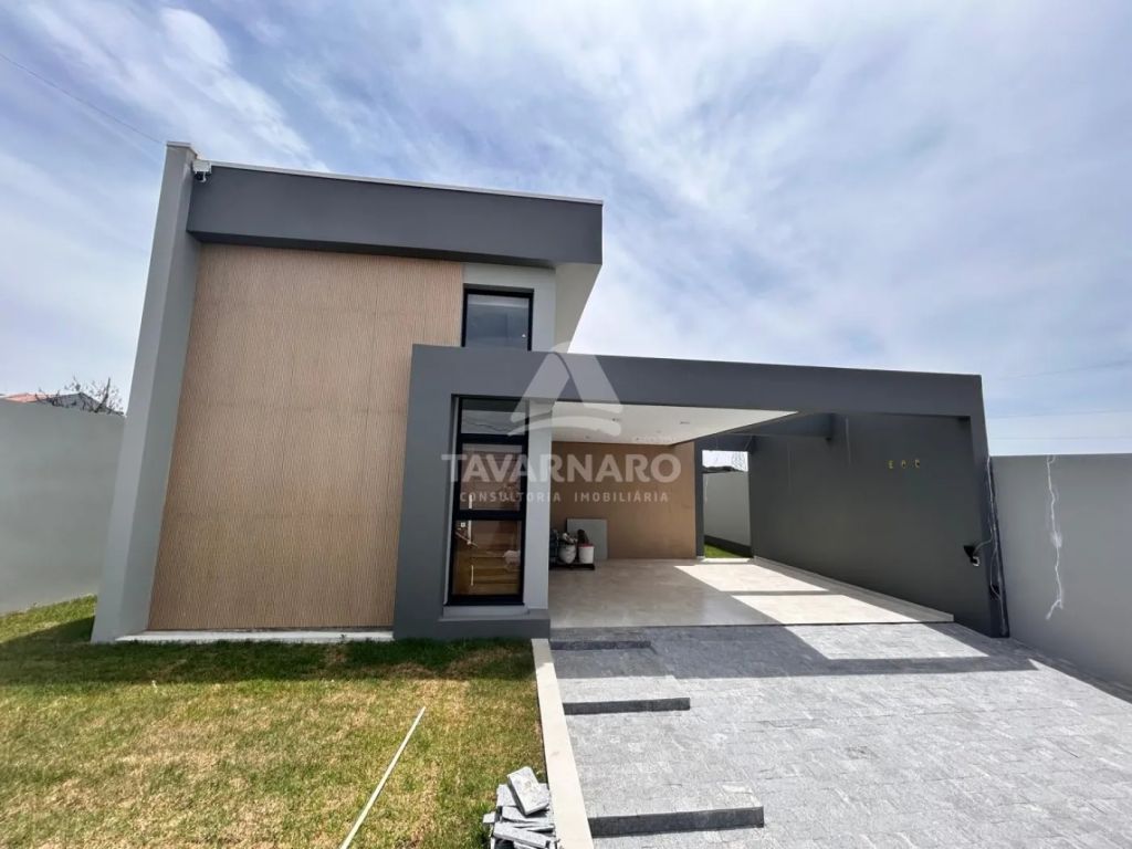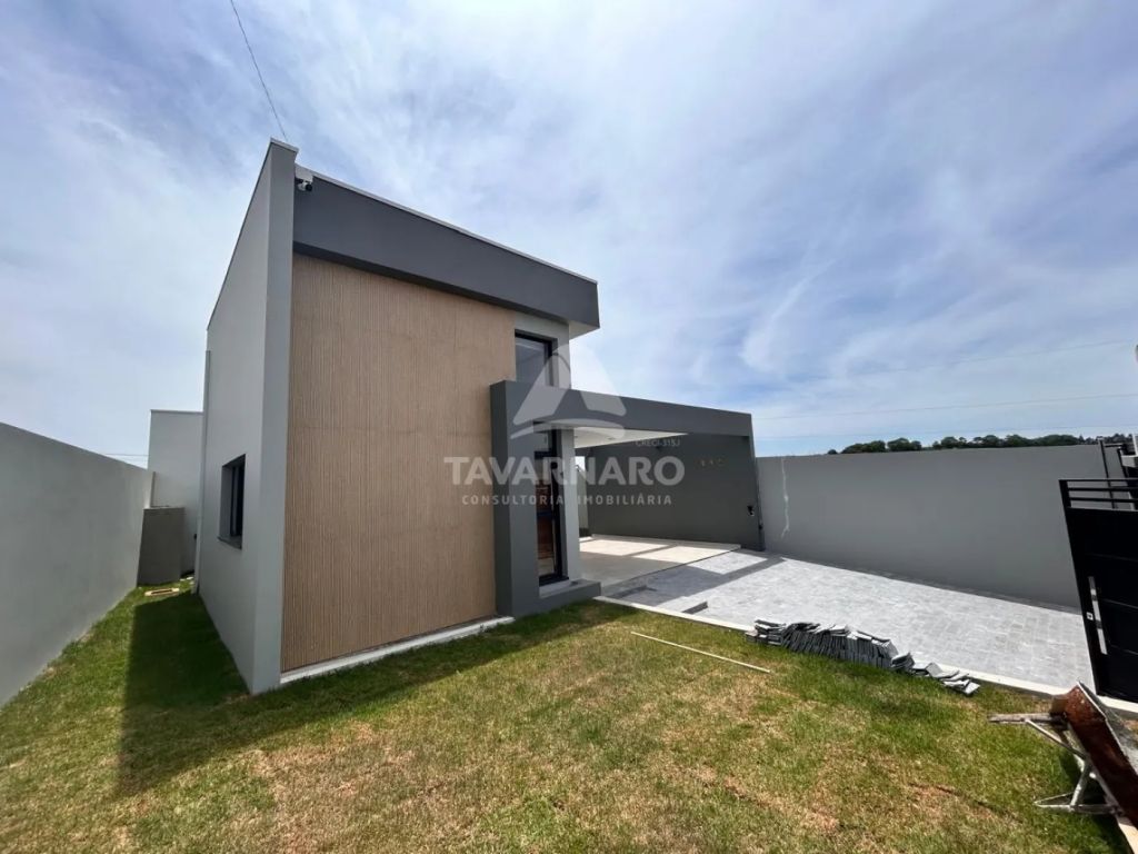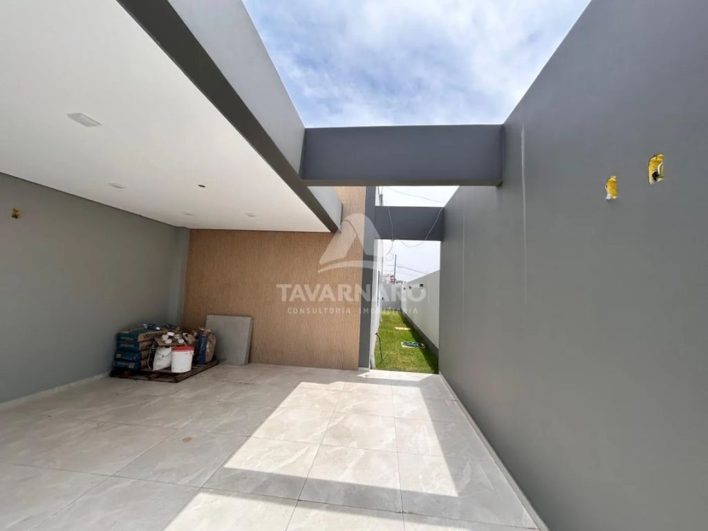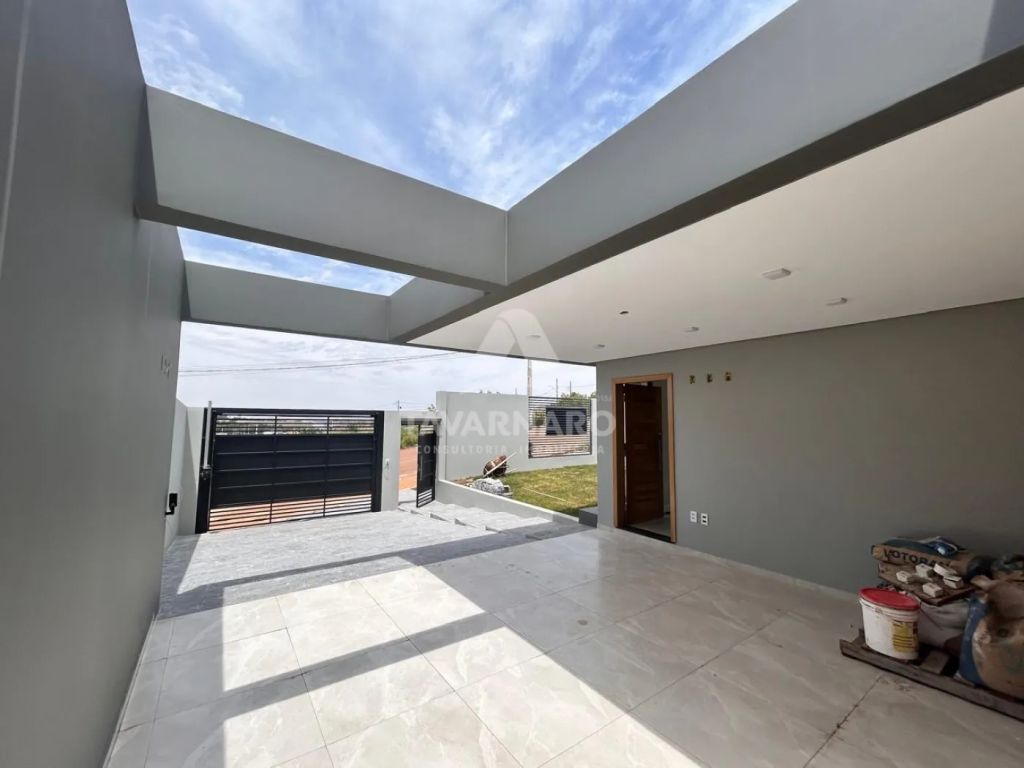 Com 3 quartos, sendo 1 suíte, a casa se destaca pela fachada minimalista, portão e gradil imponentes, transmitindo elegância e segurança.