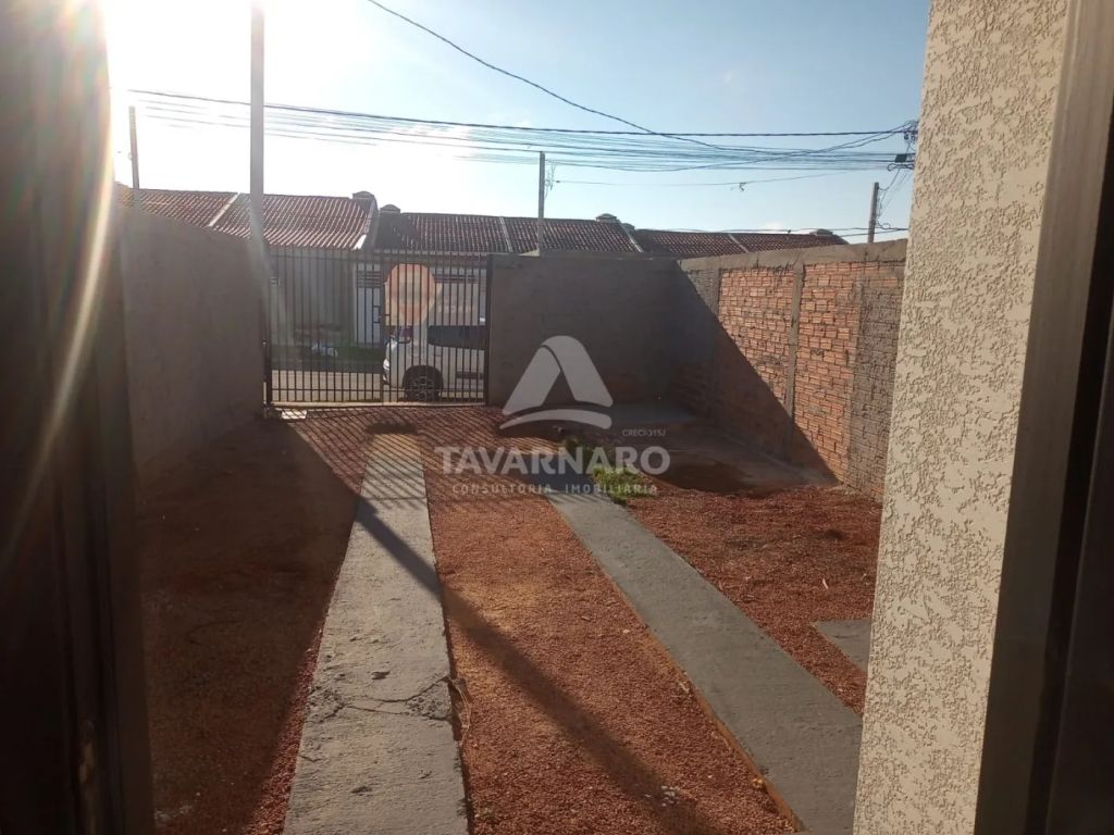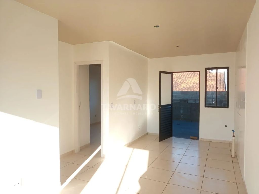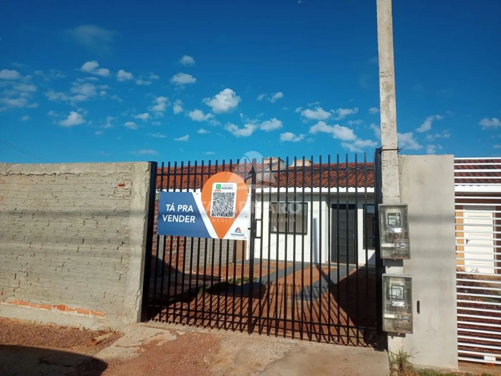 Casa com 2 quartos, sala de tv/jantar integrada com a cozinha, bwc social, área de serviço coberta, e vaga para 2 veículos.