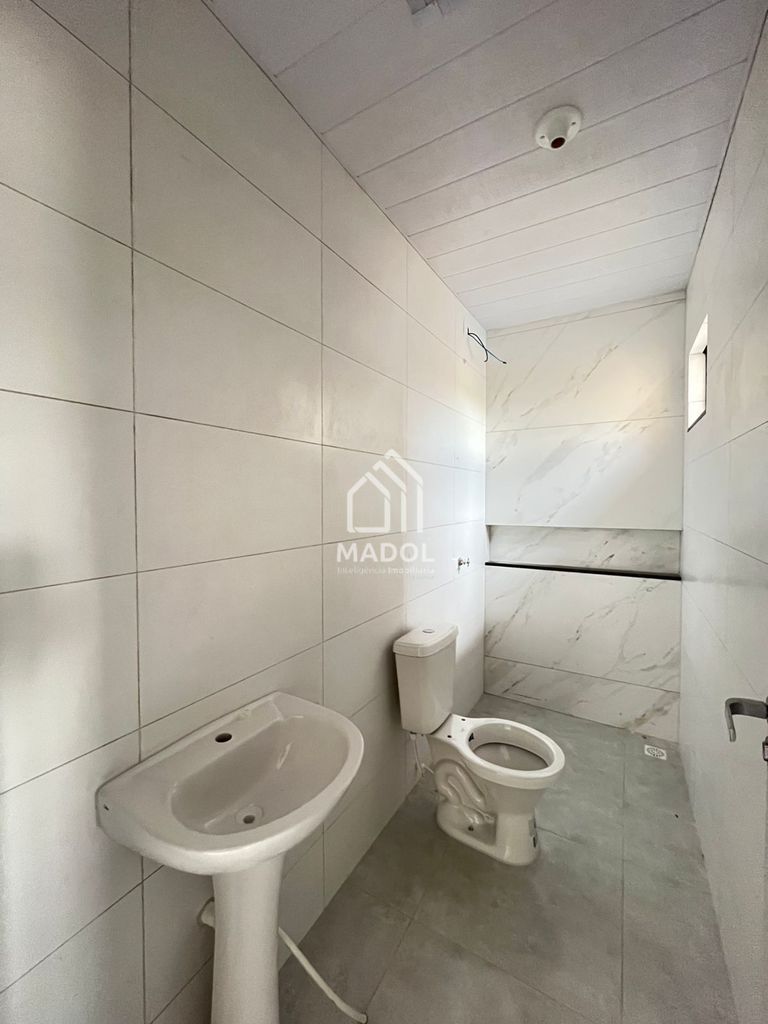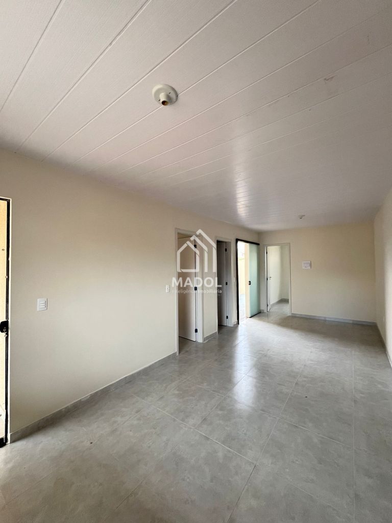 O imóvel conta com 55 m² de área construída, distribuídos em 2 quartos, sala, cozinha, 1 banheiro social e 2 vagas de garagem.