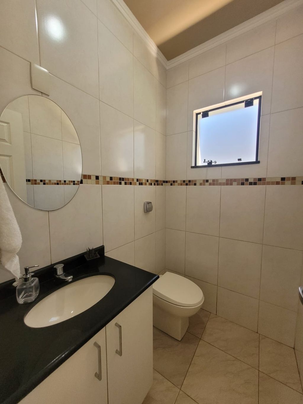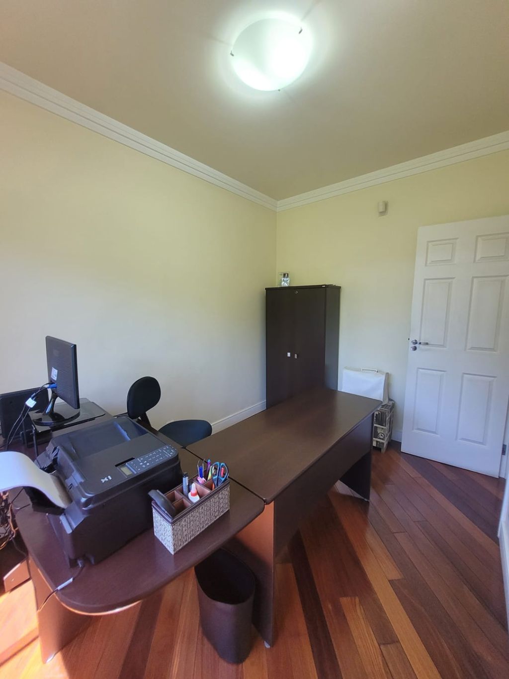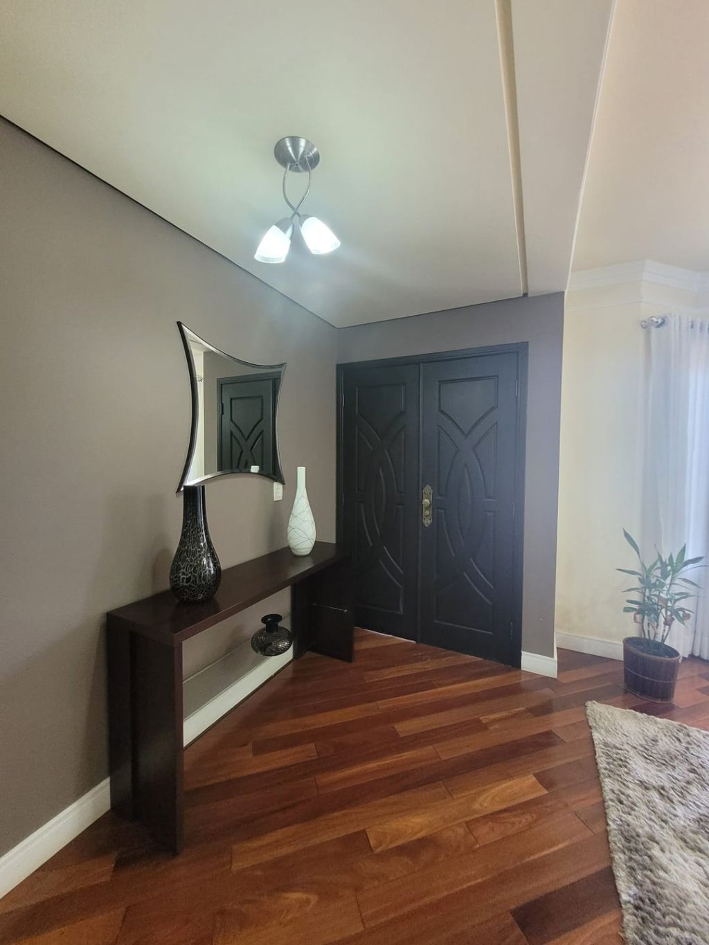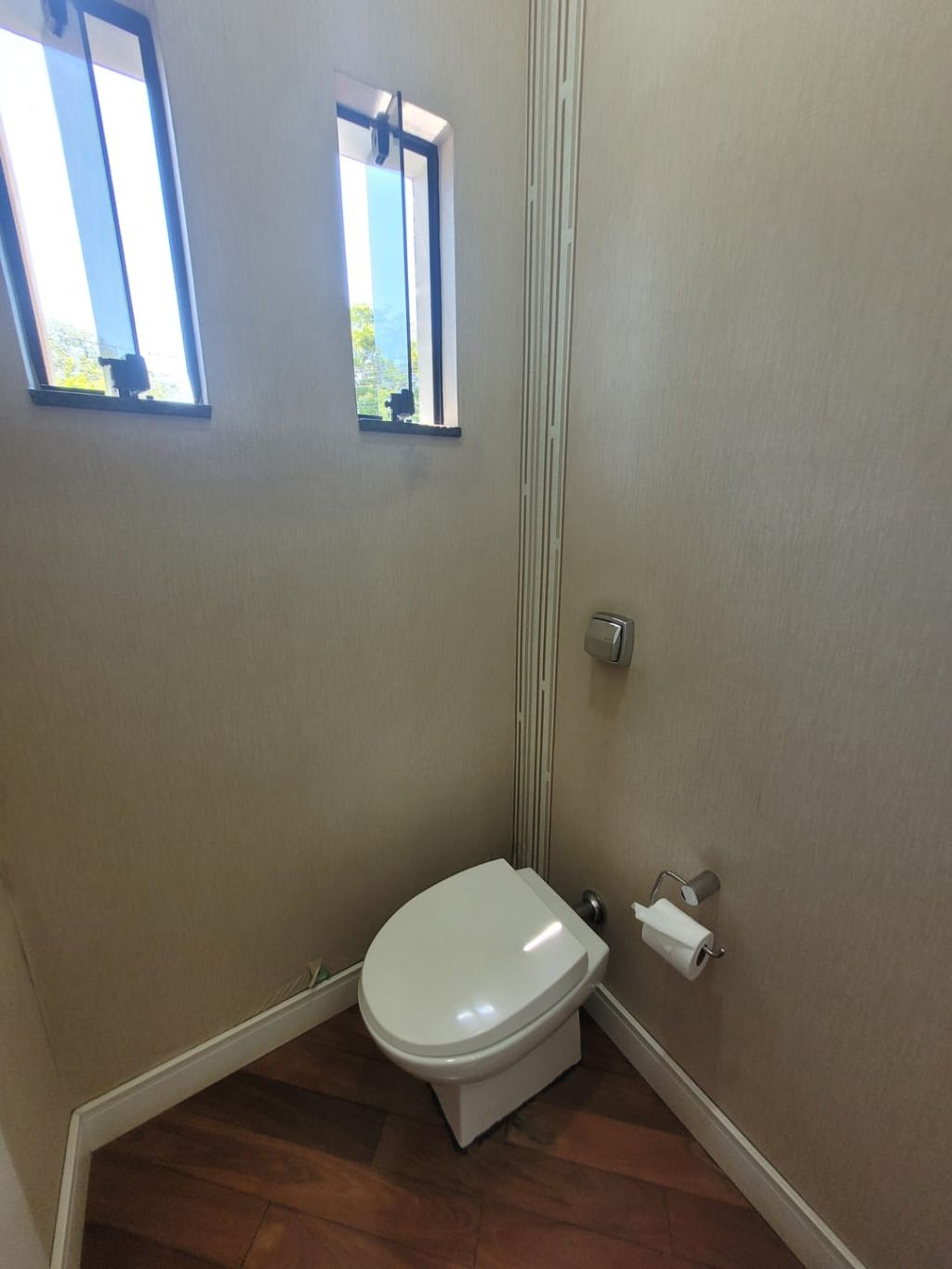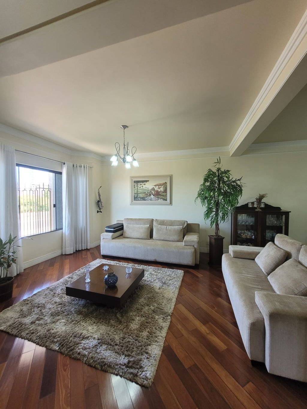 Piso inferior: Hall de entrada, sala ampla para dois ambientes, escritório, lavabo, sala intima de TV, cozinha com planejados, área gourmet com churrasqueira, banheiro social, lavanderia, despensa, duas vagas de garagem coberta e duas vagas descobertas e amplo quintal.