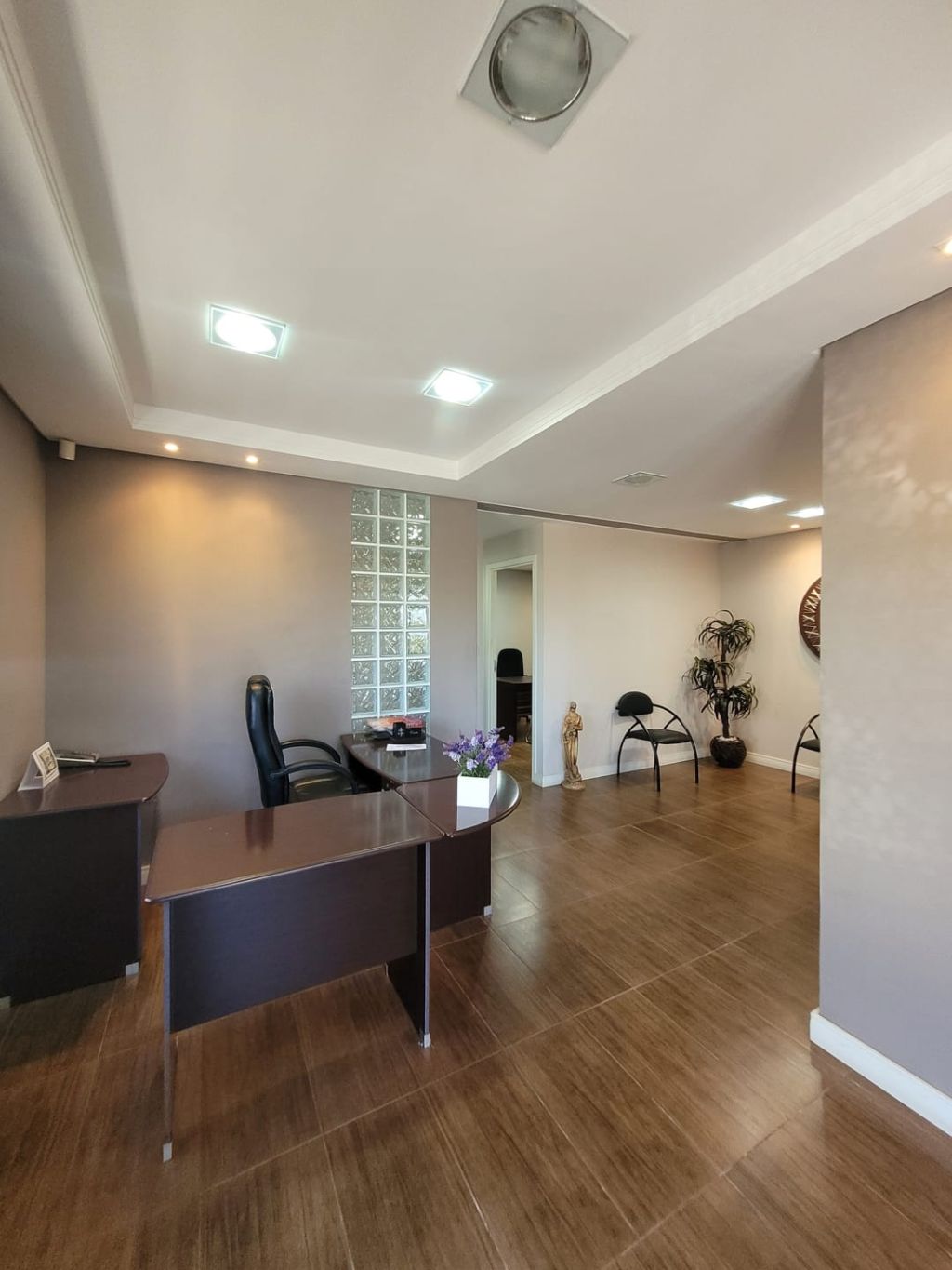 Comercial: Hall de entrada, recepção, duas salas, lavabo e cozinha.