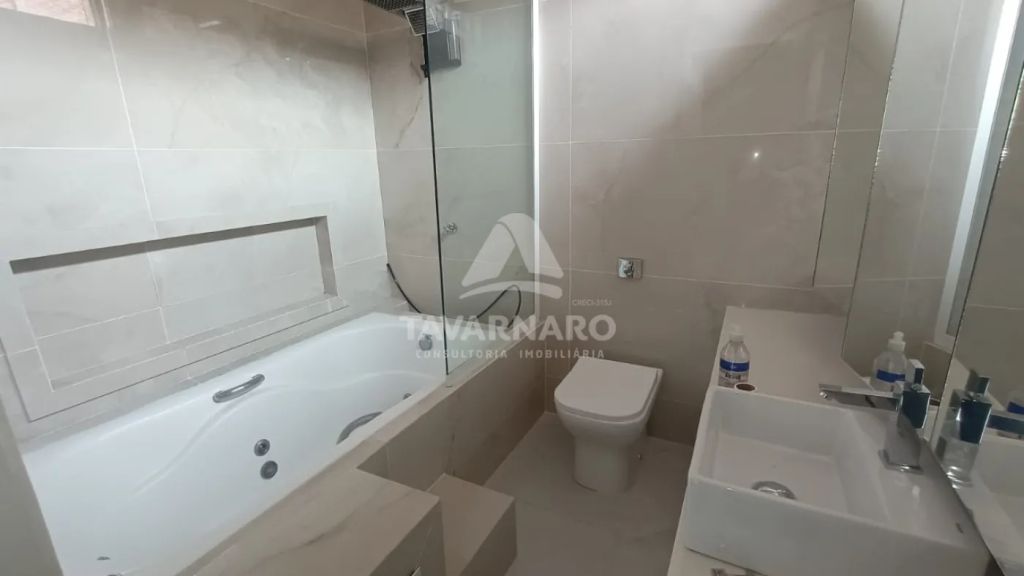 Contendo 3 dormitórios, sendo 1 suíte com banheira de hidromassagem, sala, copa, cozinha com armários, lavabo, churrasqueira com área externa coberta, área de serviço e garagem.