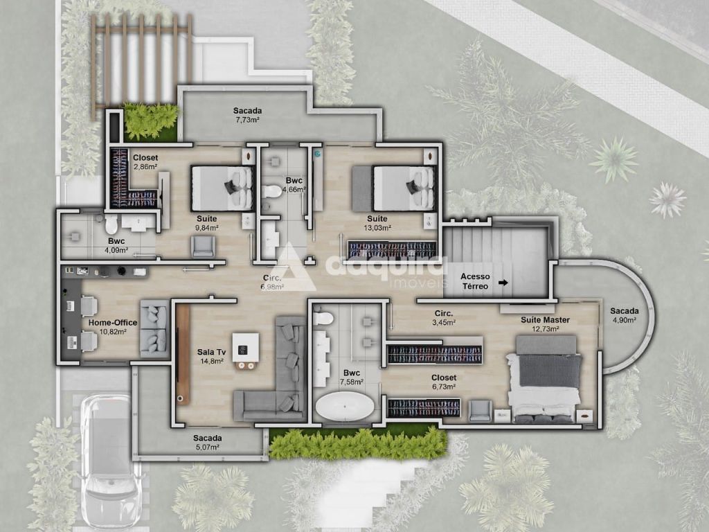 - 4 suítes, sendo 1 master e 1 no térreo;