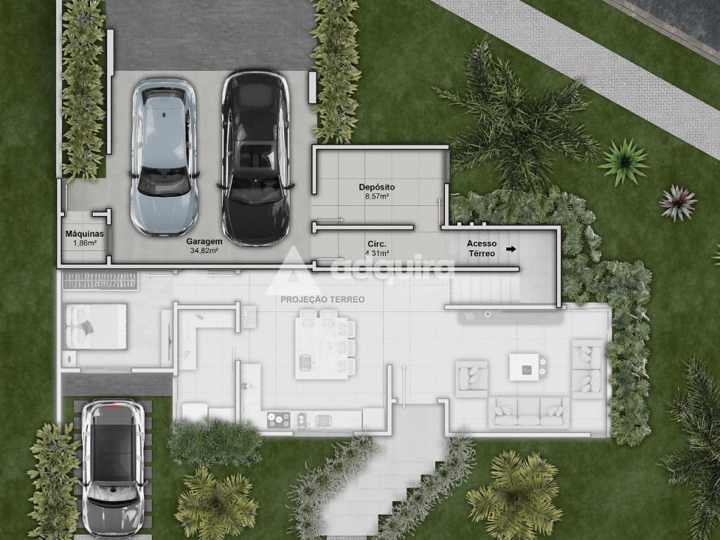- Garagem para 5 carros, sendo 2 cobertos;