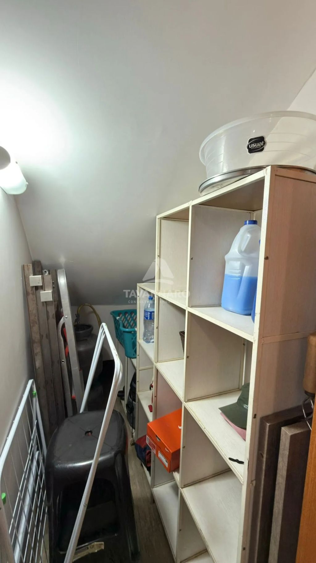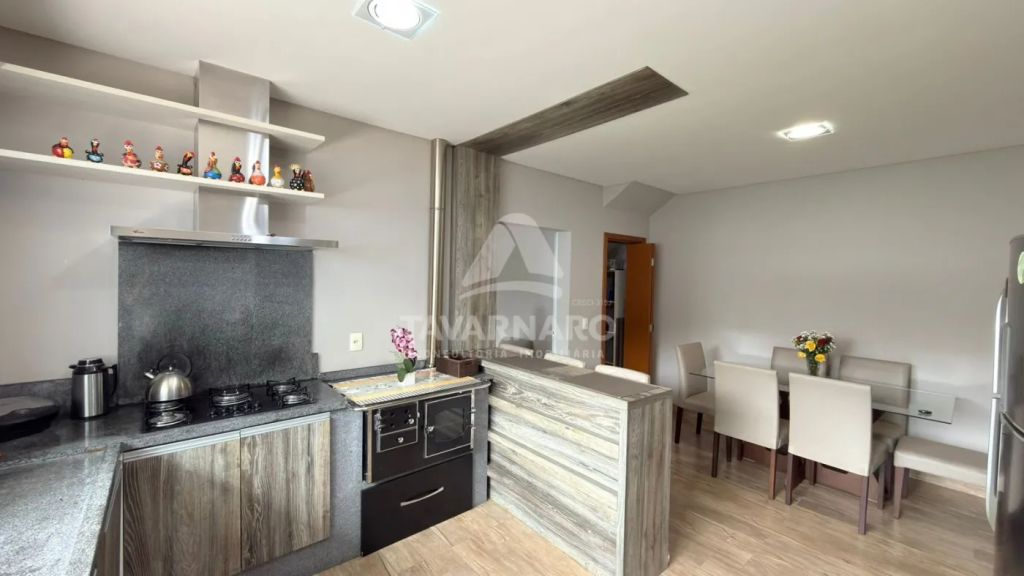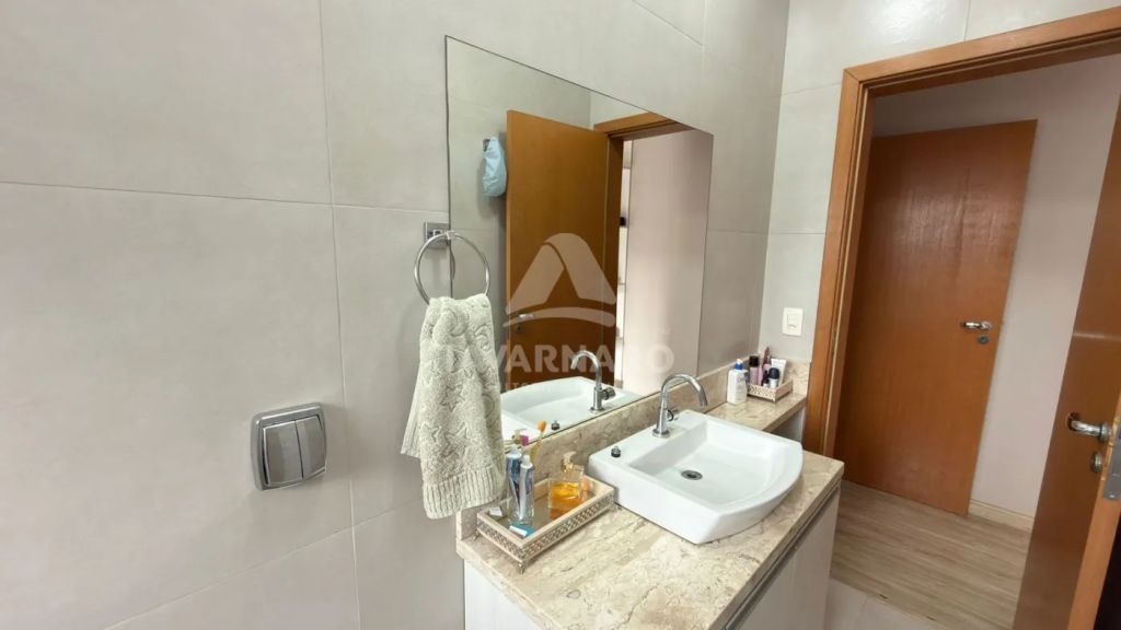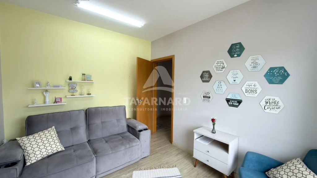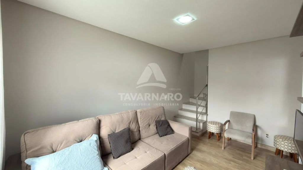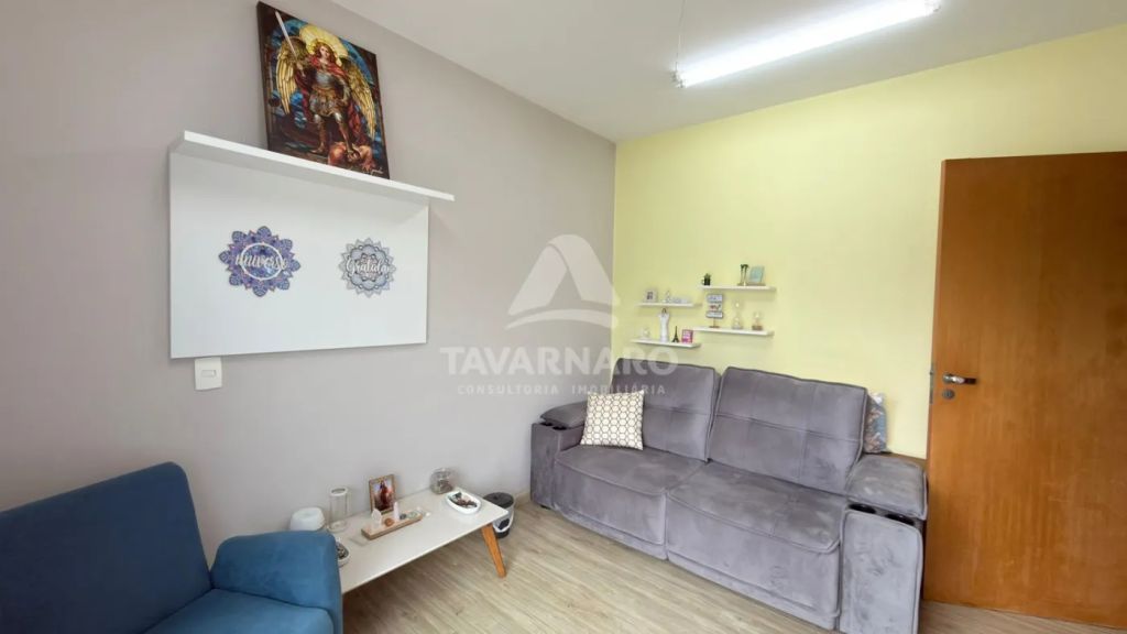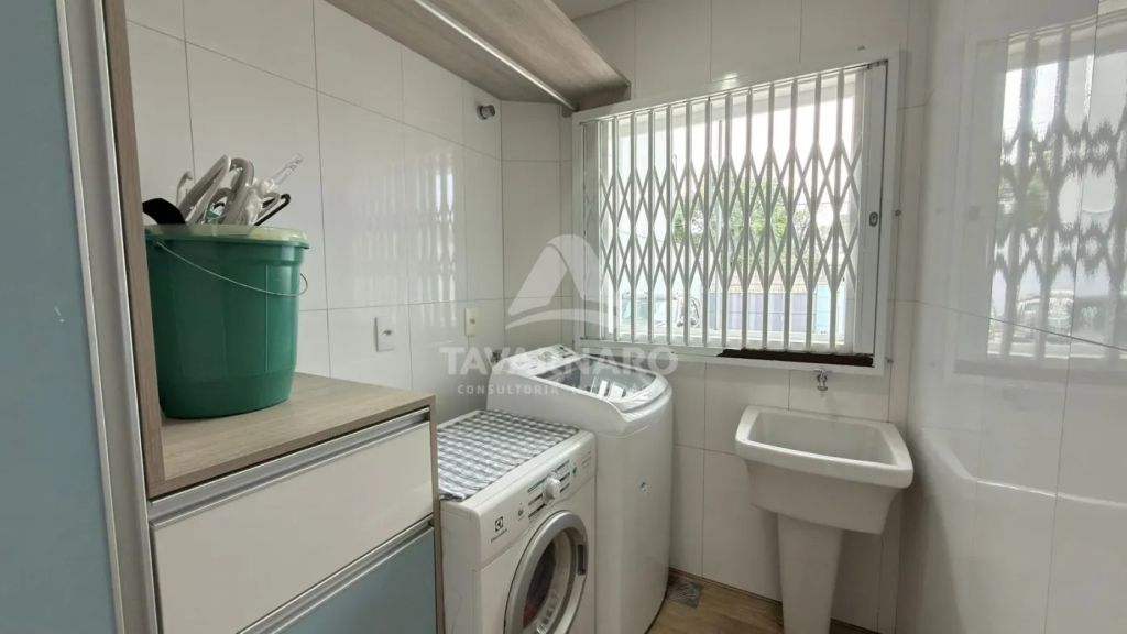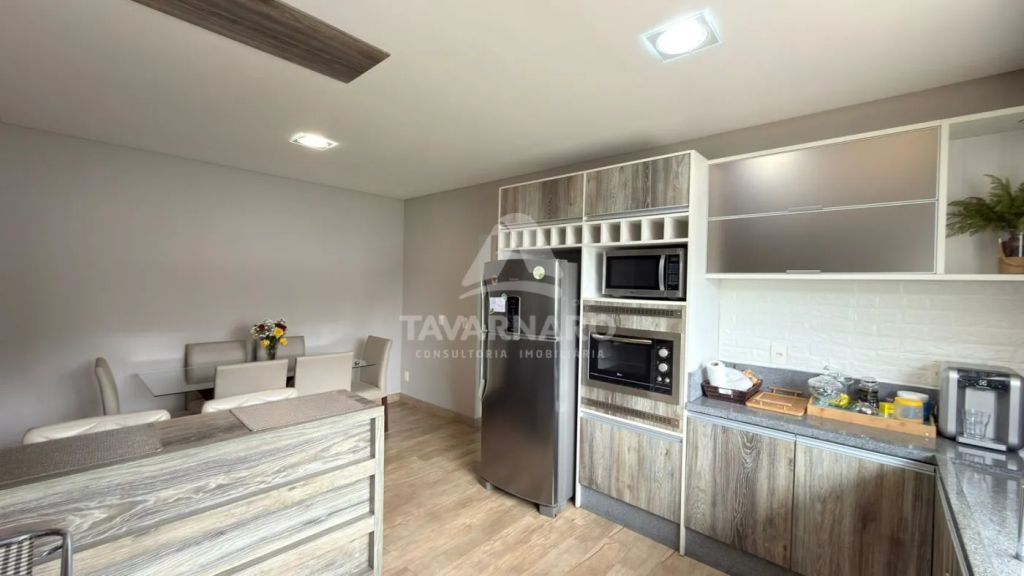 No térreo possui cozinha com planejados, sala de estar, lavabo e área de serviço com garagem para um carro e churrasqueira.