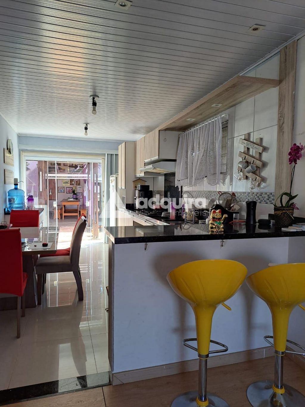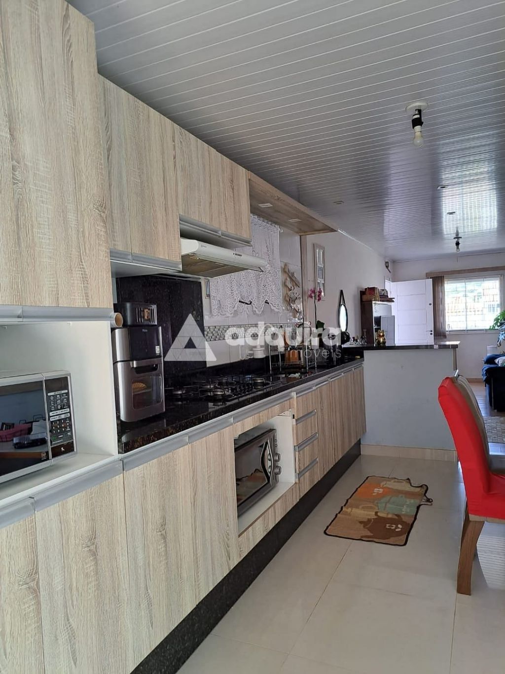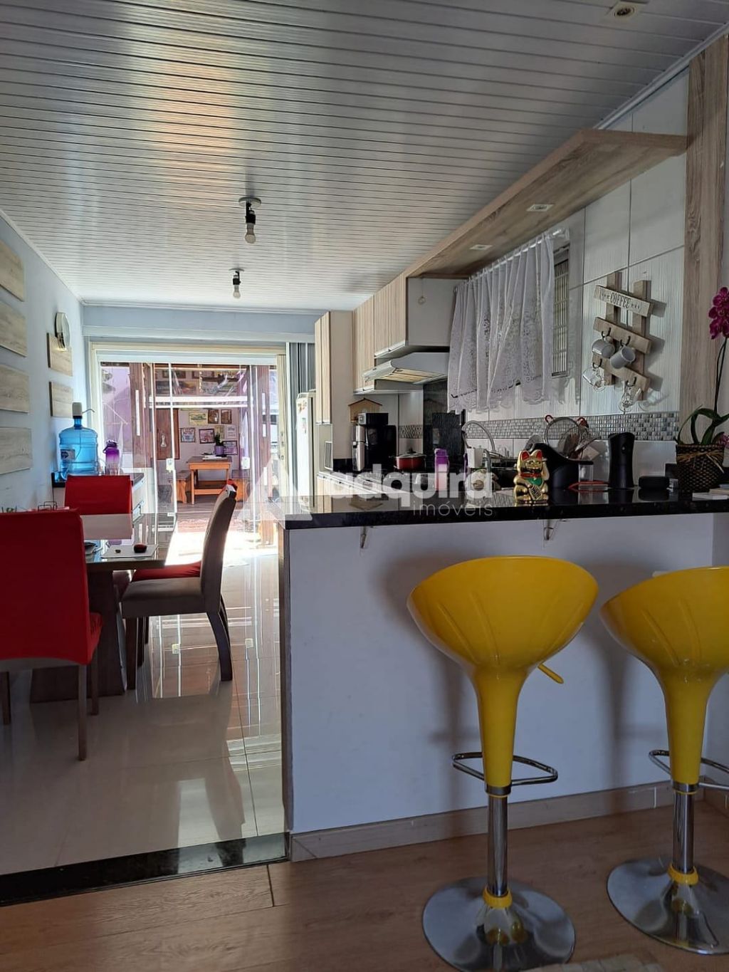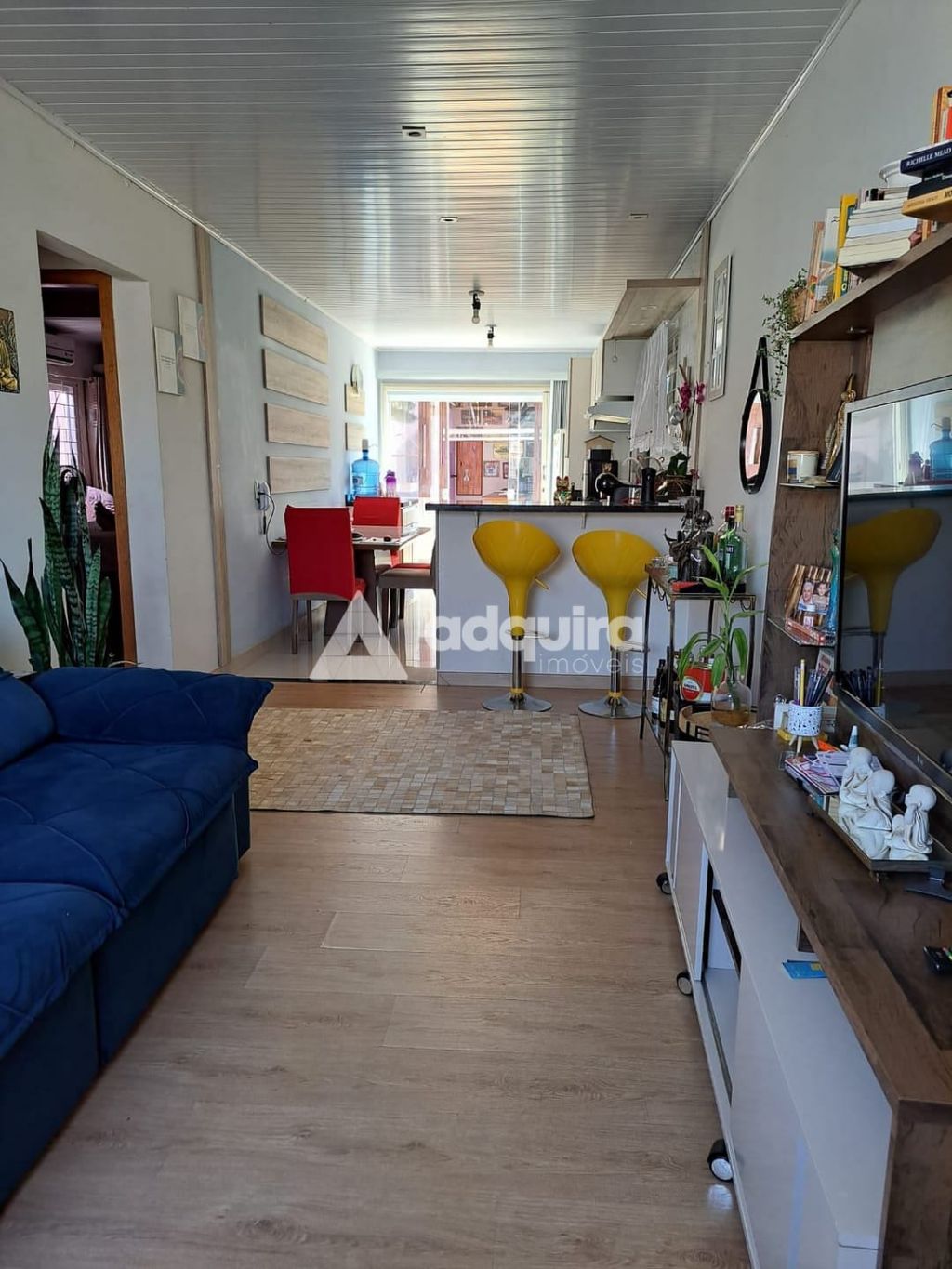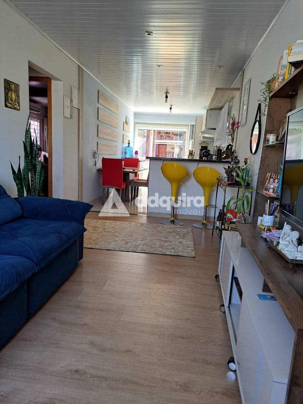 02 quartos, sala ampla integrada com a cozinha ( cozinha com armários planejados e bancada), banheiro social e garagem fechada para dois carros.