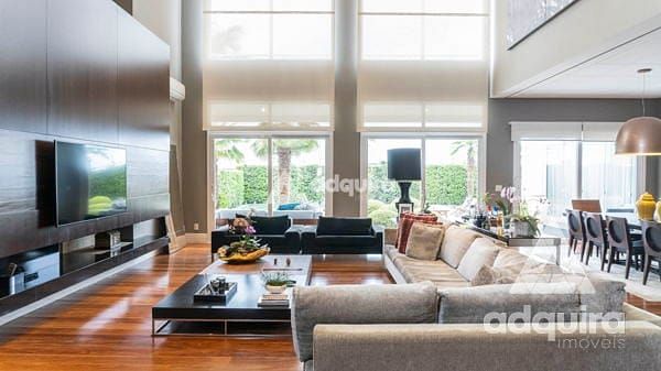 Os ambientes do andar térreo são super espaçosos, todos muito bem distribuídos em sala de estar/ televisão, sala de jantar, cozinha da marca Kitchens, área de serviço e churrasqueira gourmet; todos os cômodos com armários feitos sob medida.