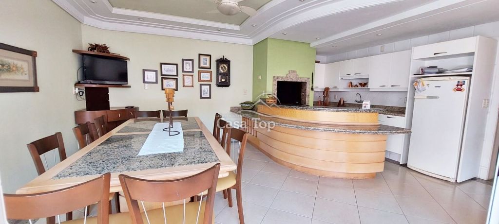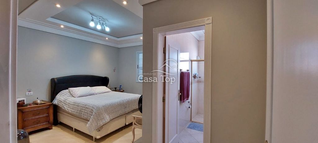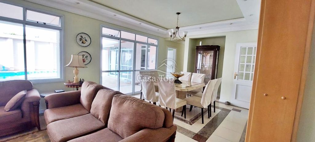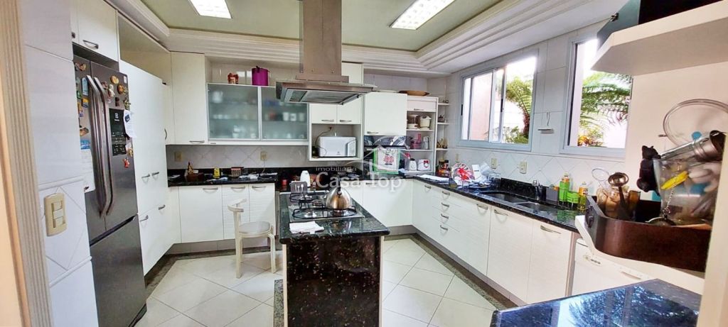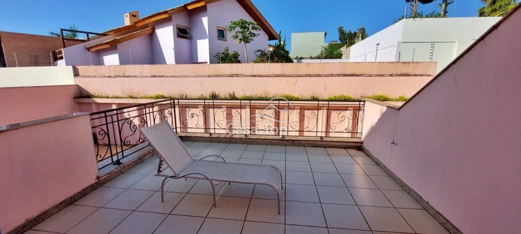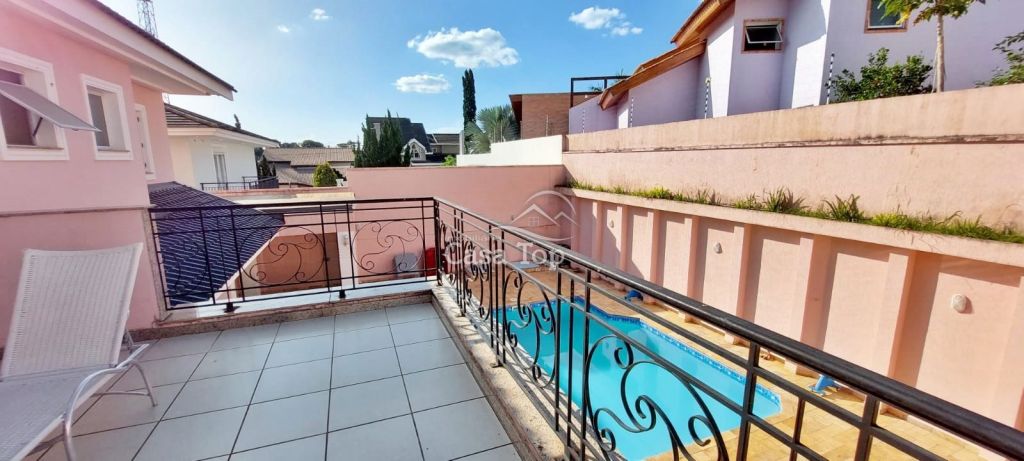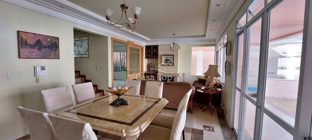 Residência de alto padrão medindo 448m², contendo 3 suítes (sendo 1 suíte com hidromassagem, closet e sacada), 2 sala de estar (sendo 1 com lareira), sala de TV, sala de jantar com mesa, cozinha com armários, 2 entradas (social e empregada), dependência de empregada com BWC, área gourmet, ático, BWC social, área de serviço e garagem para 4 carros (2 vagas cobertas).