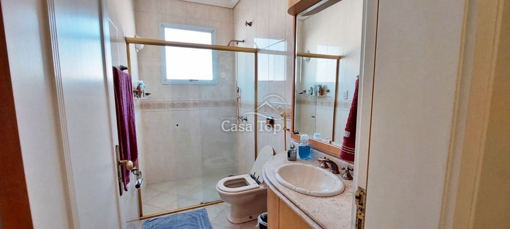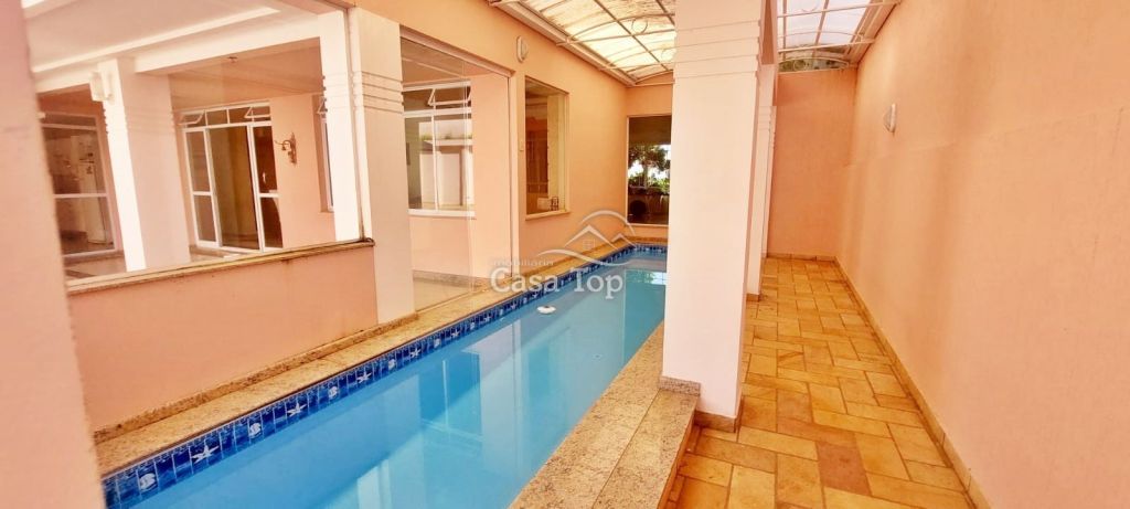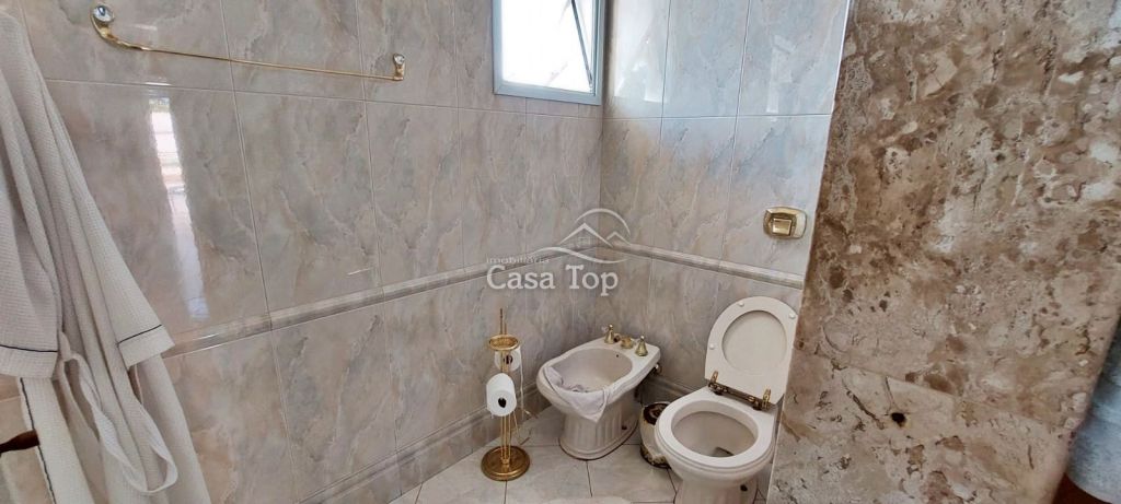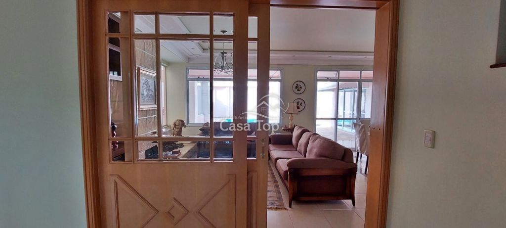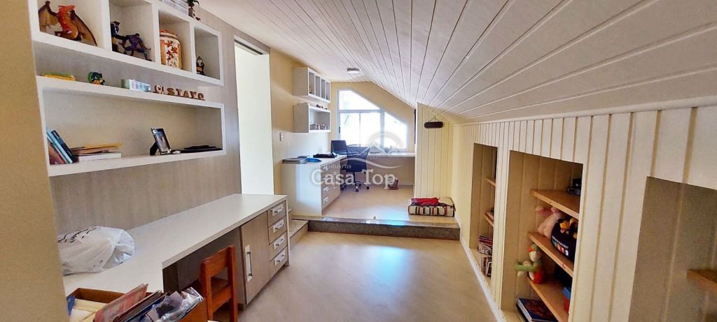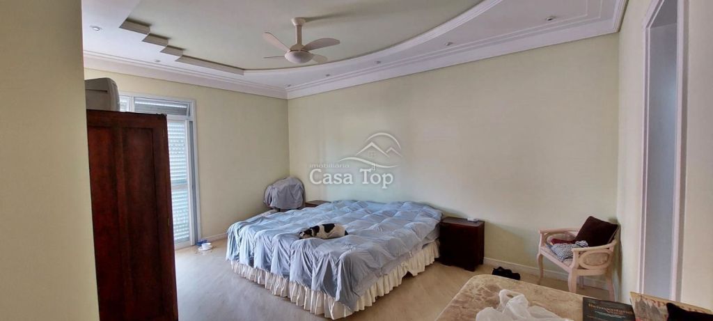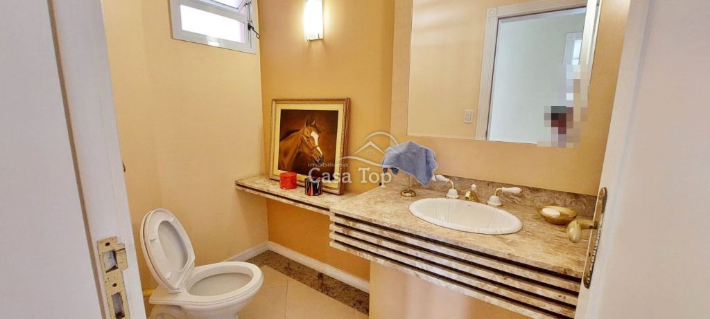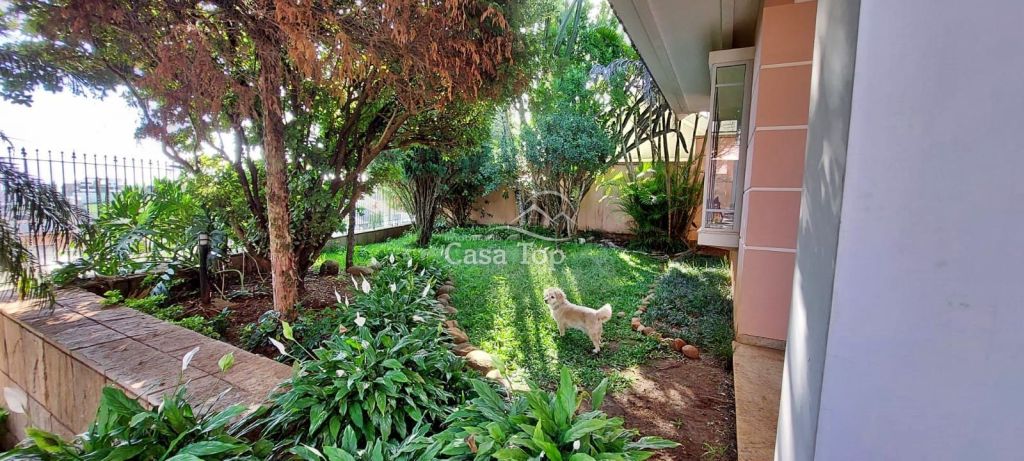 Residência de alto padrão medindo 448m², contendo 3 suítes (sendo 1 suíte com hidromassagem, closet e sacada), 2 sala de estar (sendo 1 com lareira), sala de TV, sala de jantar com mesa, cozinha com armários, 2 entradas (social e empregada), dependência de empregada com BWC, área gourmet, ático, BWC social, área de serviço e garagem para 4 carros (2 vagas cobertas).