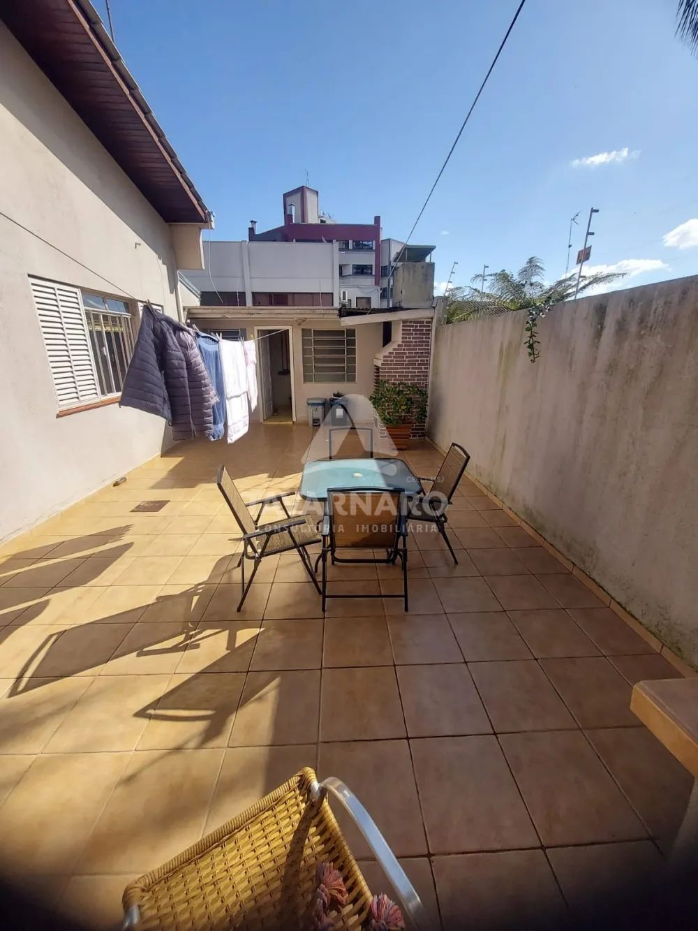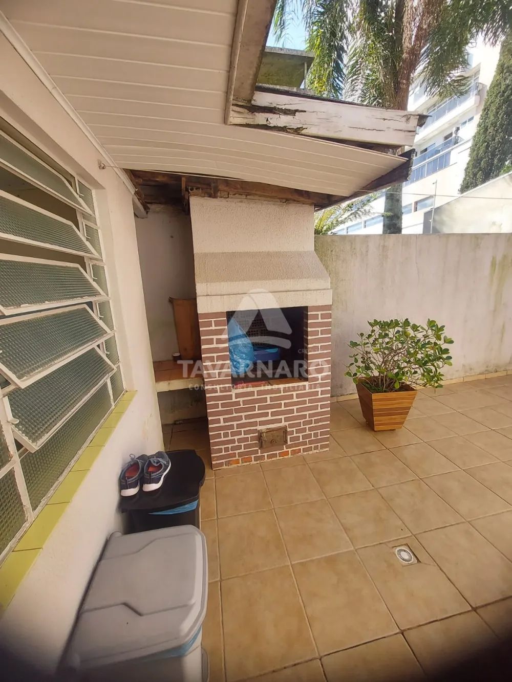 Pela copa, temos acesso ao quintal que é todo em lajota e possui área de serviço com banheiro e churrasqueira ao lado.