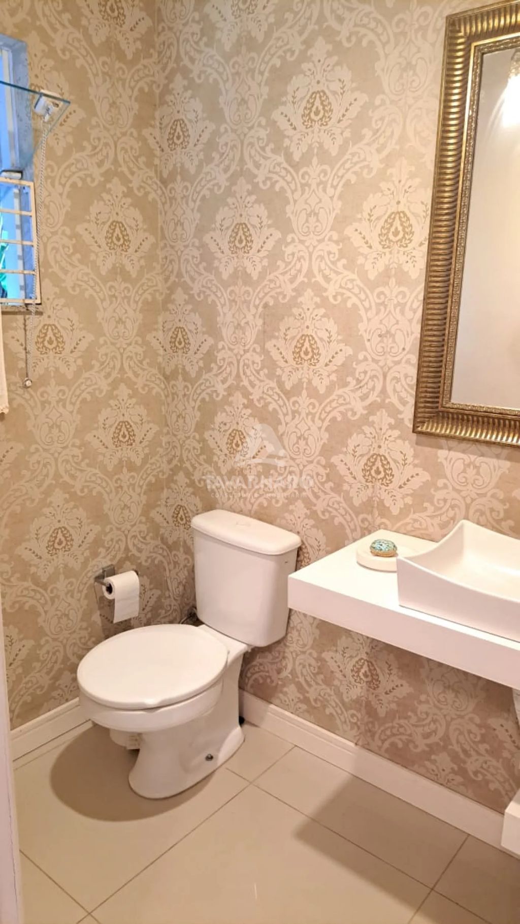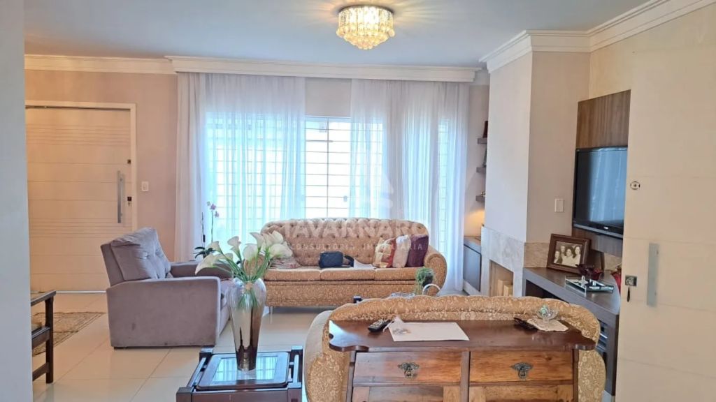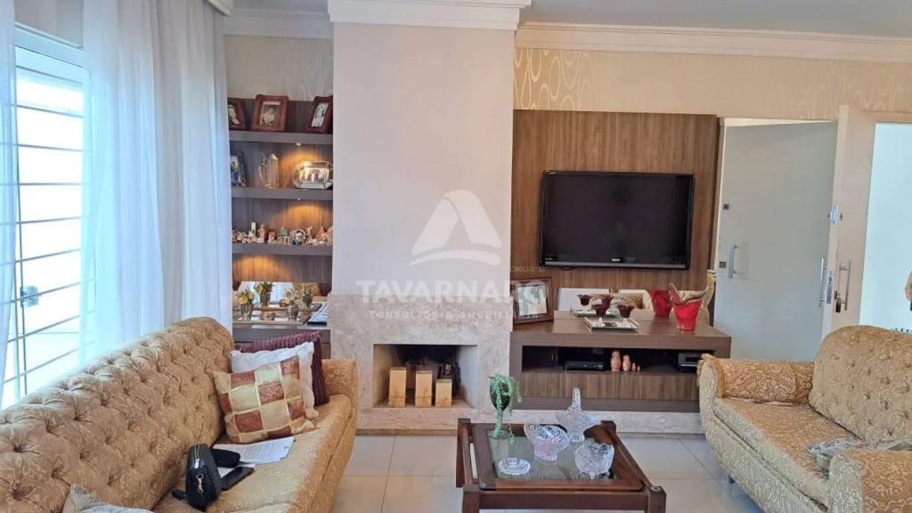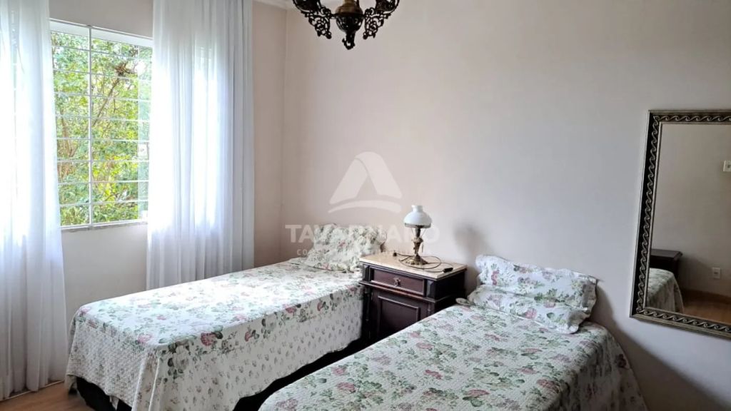 No piso térreo possui 2 quartos (sendo 1 suíte), lavabo, sala de estar com lareira, sala de jantar com sacada e cozinha.