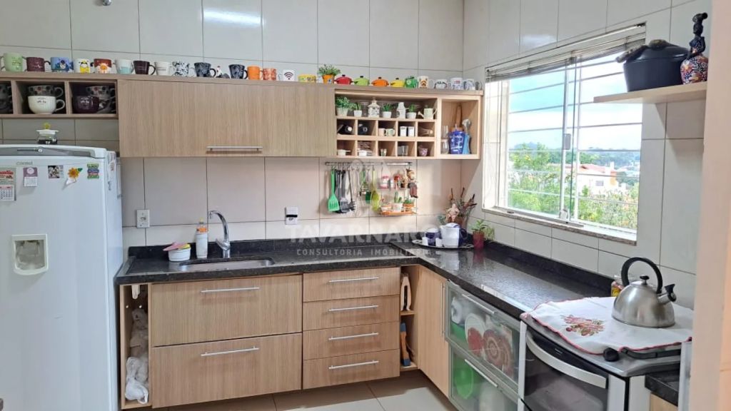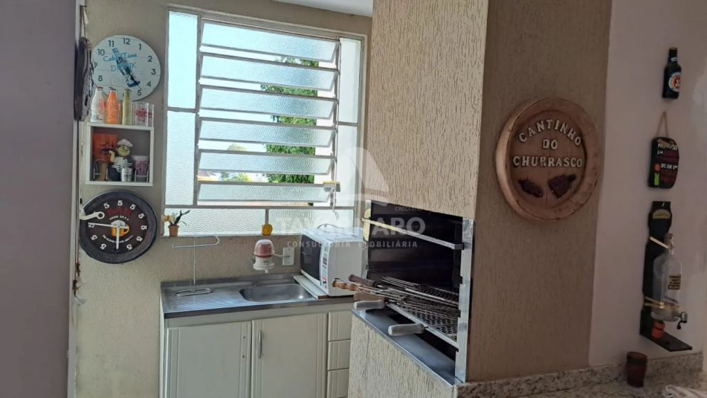 No piso inferior possui salão de festas com churrasqueira, 1 quarto, 2 banheiros, depósito e área de serviço.