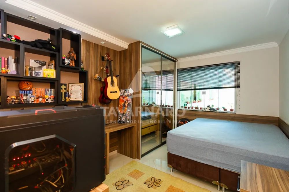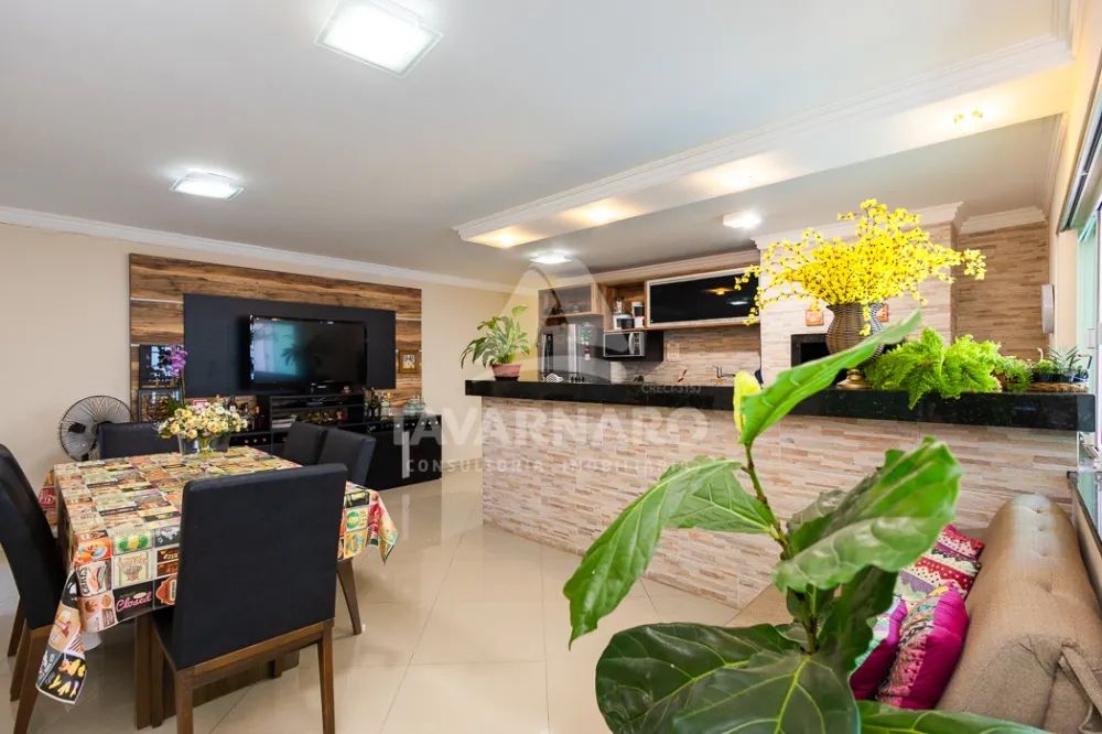 O imóvel possui 4 quartos (sendo 1 suíte com hidromassagem), sala de estar, sala de tv, cozinha, 2 banheiros sociais, área de serviço, espaço gourmet com churrasqueira que da acesso a piscina com aquecimento solar, banheiro externo. Garagem coberta para 1 veículo + 3 descobertos.